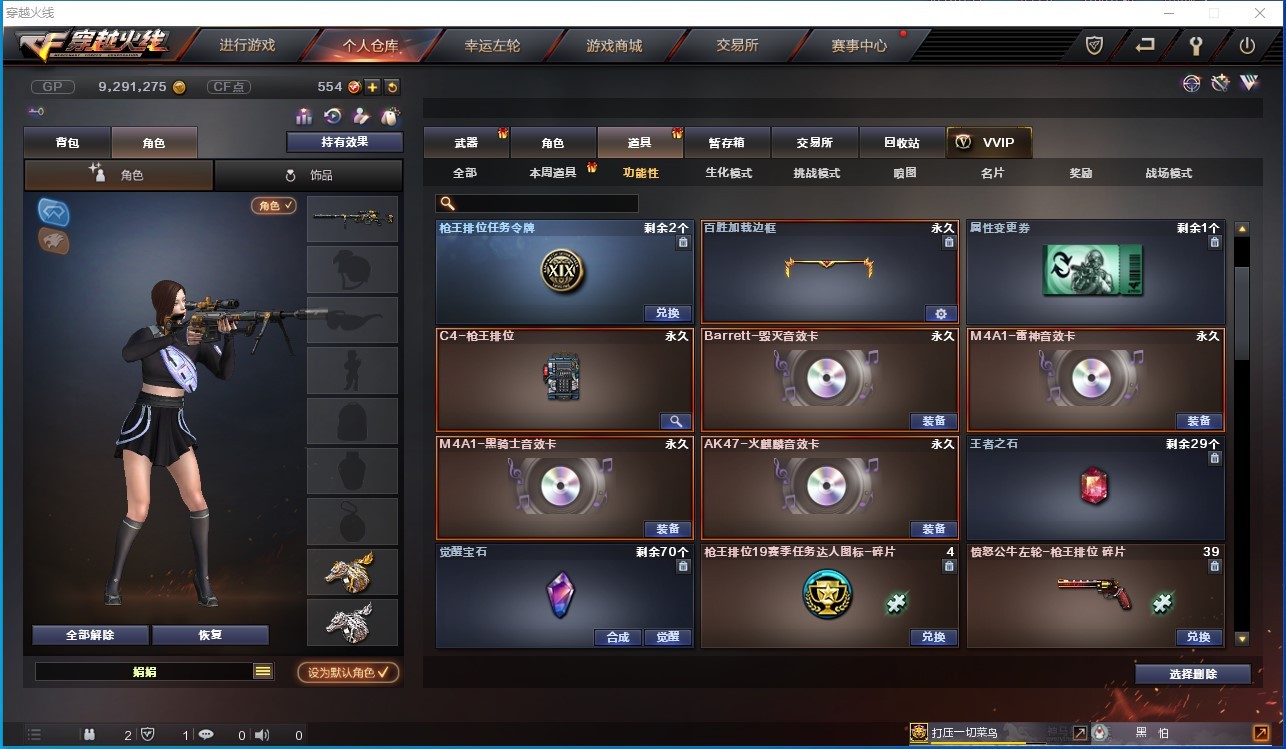 【道具】超级对讲机、炫彩背包、闪光护目镜970天16小时、烟雾保护头盔5050天16小时、防弹衣150天16小时、防弹头盔150天16小时、手雷包、C4工具钳、手枪弹匣 246天3小时、步枪弹匣35天16小时、散弹枪弹匣63天17小时、金蛇戒、银蛇戒