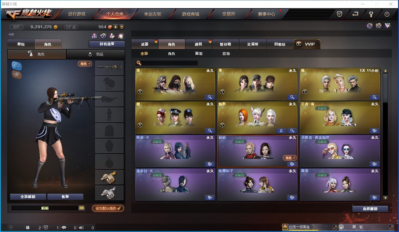 【角色】职业选手(无需换弹)、葵、零、樱、魅影、王者-春、暗夜-X、娟娟(无需换弹)、青霞仙子(无需换弹)