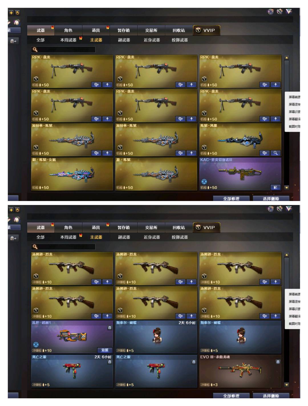 【辅助枪】 / RPK-盘龙*6/加特林炼狱*2炼狱风暴/汤姆逊-烈龙*7AA12-雷霆/神圣爆裂者III//迷你生化手雷/死亡之眼/ 斯太尔蝴蝶 / 六烈六盘 / 六盘六烈 / 6烈6盘 / 6盘6烈 /生化号 / 爆破号 / 御-炼狱-女娲
