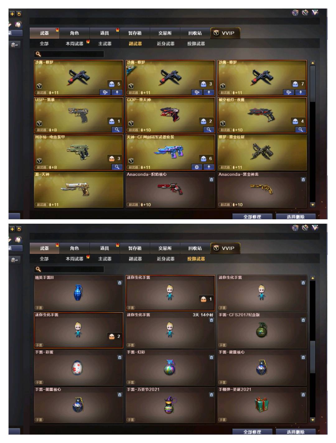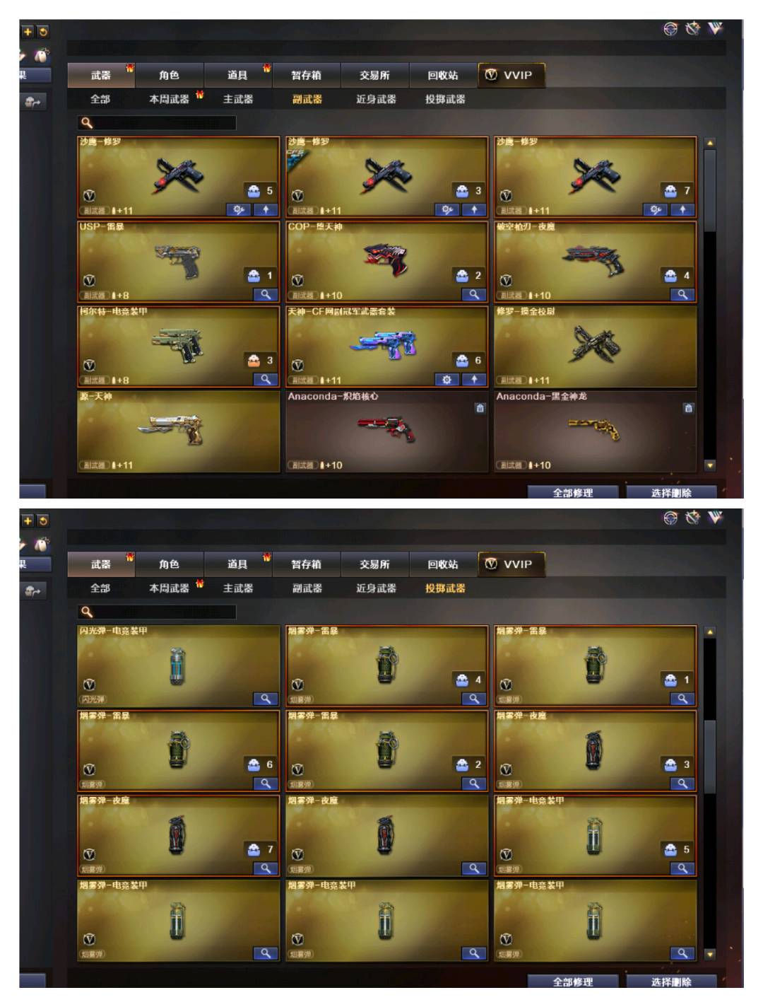 【通用道具】双1-7背包 / 手枪弹匣 / 金蛇戒 / 狙击枪弹夹 / 魔龙戒 / 散弹枪弹夹 / 圣龙戒 / 挑战弹夹 / 银蛇戒 / 防弹头盔 / 烟雾保护头盔 / 防弹衣 / C4工具钳 / 手雷包 / 步枪弹匣 / 冲锋枪弹匣 / 机枪弹匣 / 闪光护目镜/超级护目镜/超级背包/透明头盔/透明护目镜/ 超级对讲机 /新彩色昵称/C4.红龙