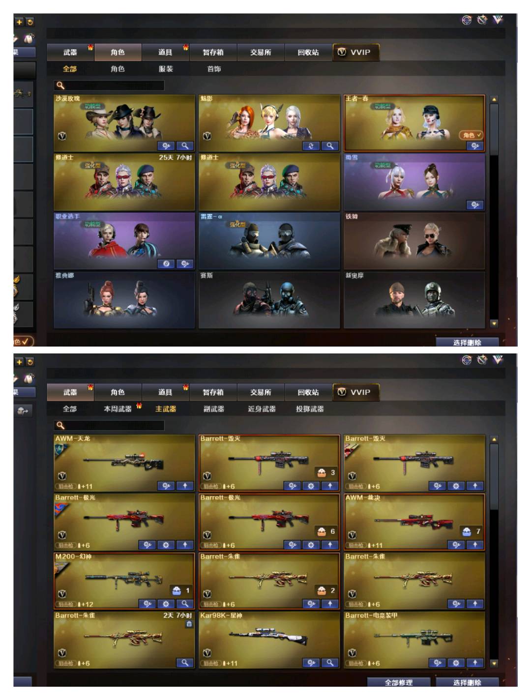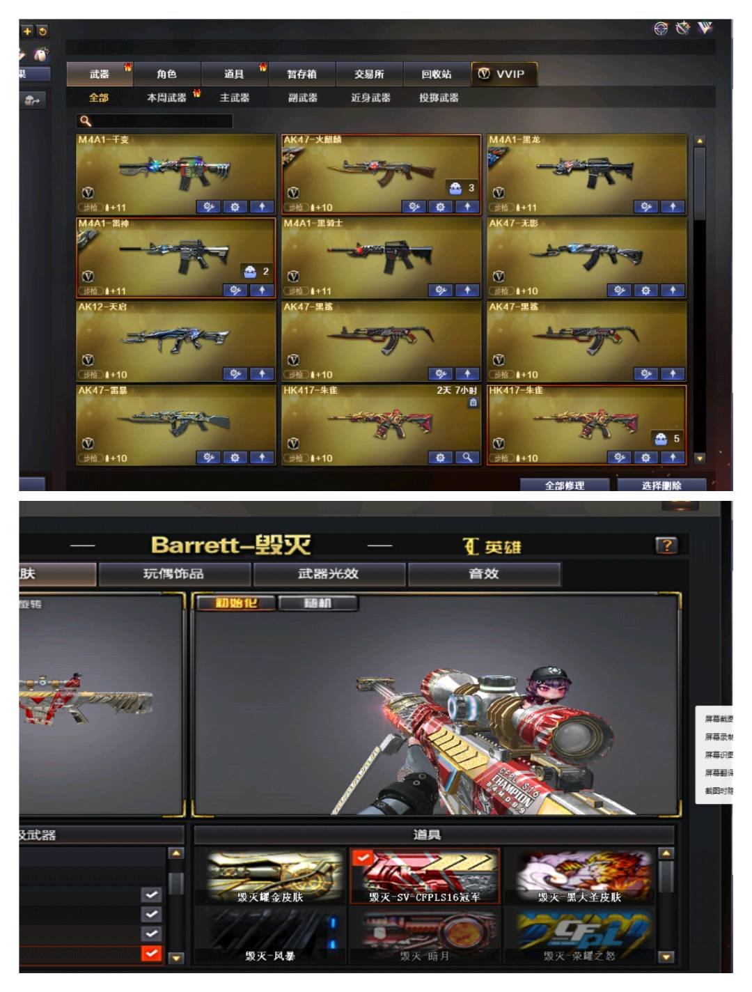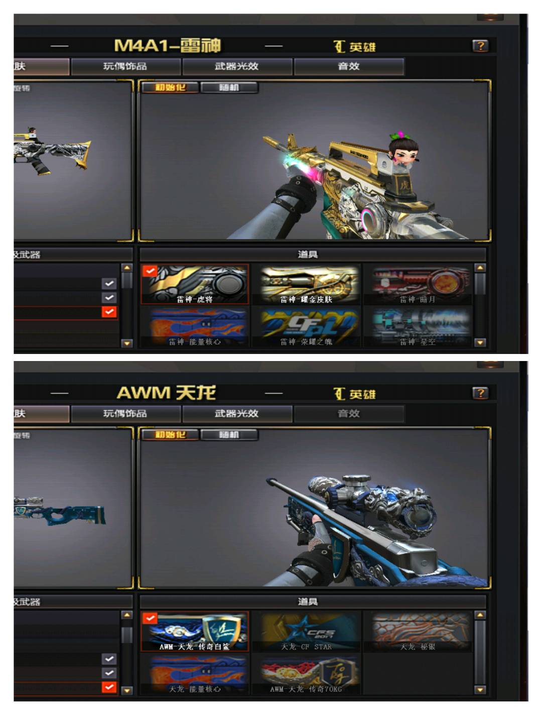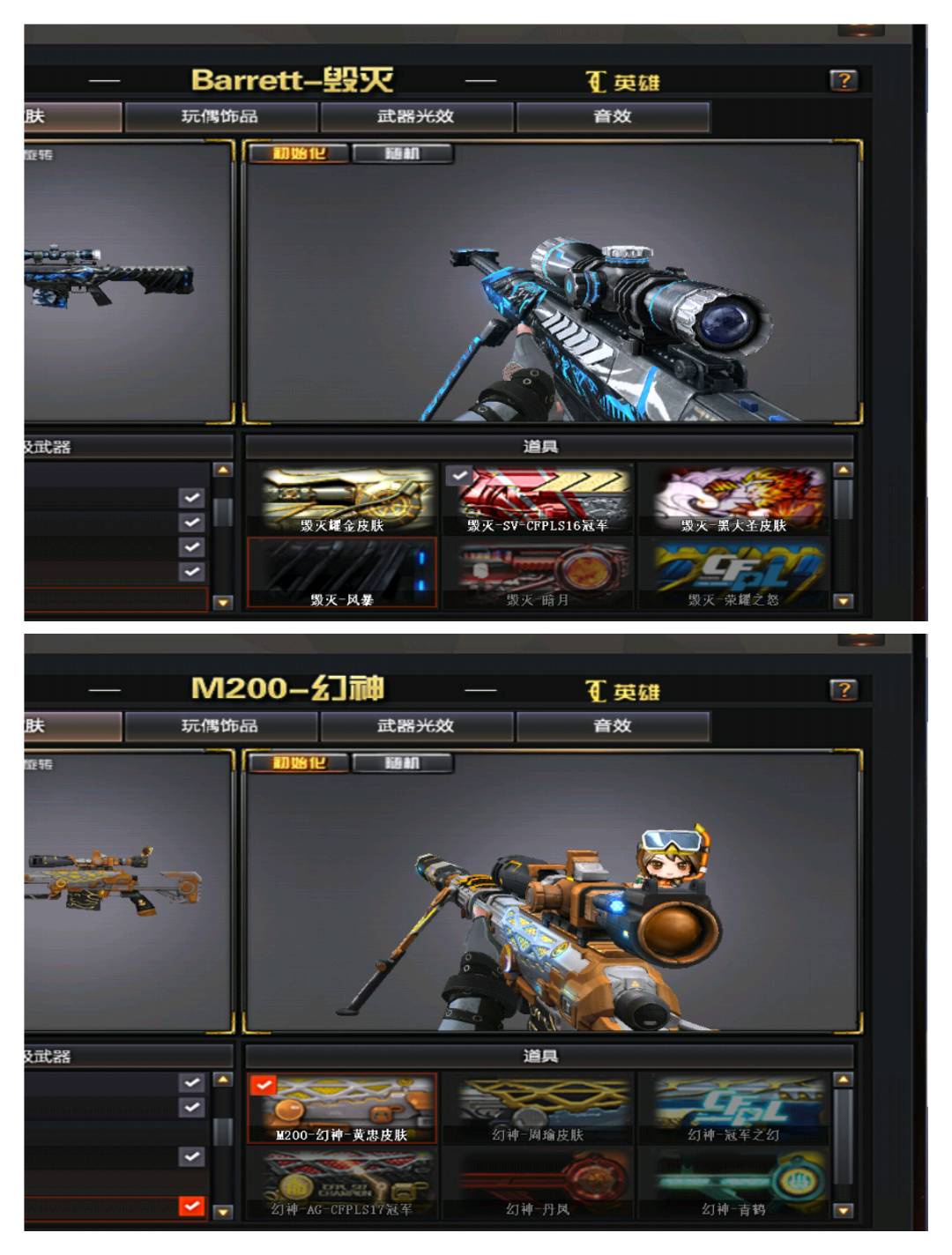 【狙击枪】/ AWM-天龙/Barrett-暗月传说 毁灭/传说圣灵/ 星神/幻神/朱雀/电竞装甲/王者之决/王者之力/极光/