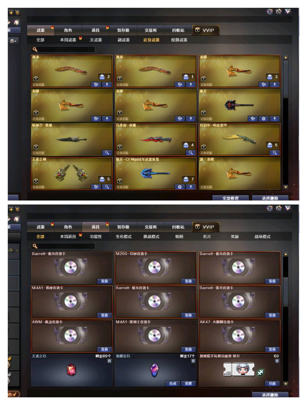 【近身武器】麒麟刺*/ 屠龙/擎天/斩神刀,雷暴/轻型军用手斧-镜*3/马来剑夜魔/电竞装甲/龙啸/荣耀之证,荣耀之巅/