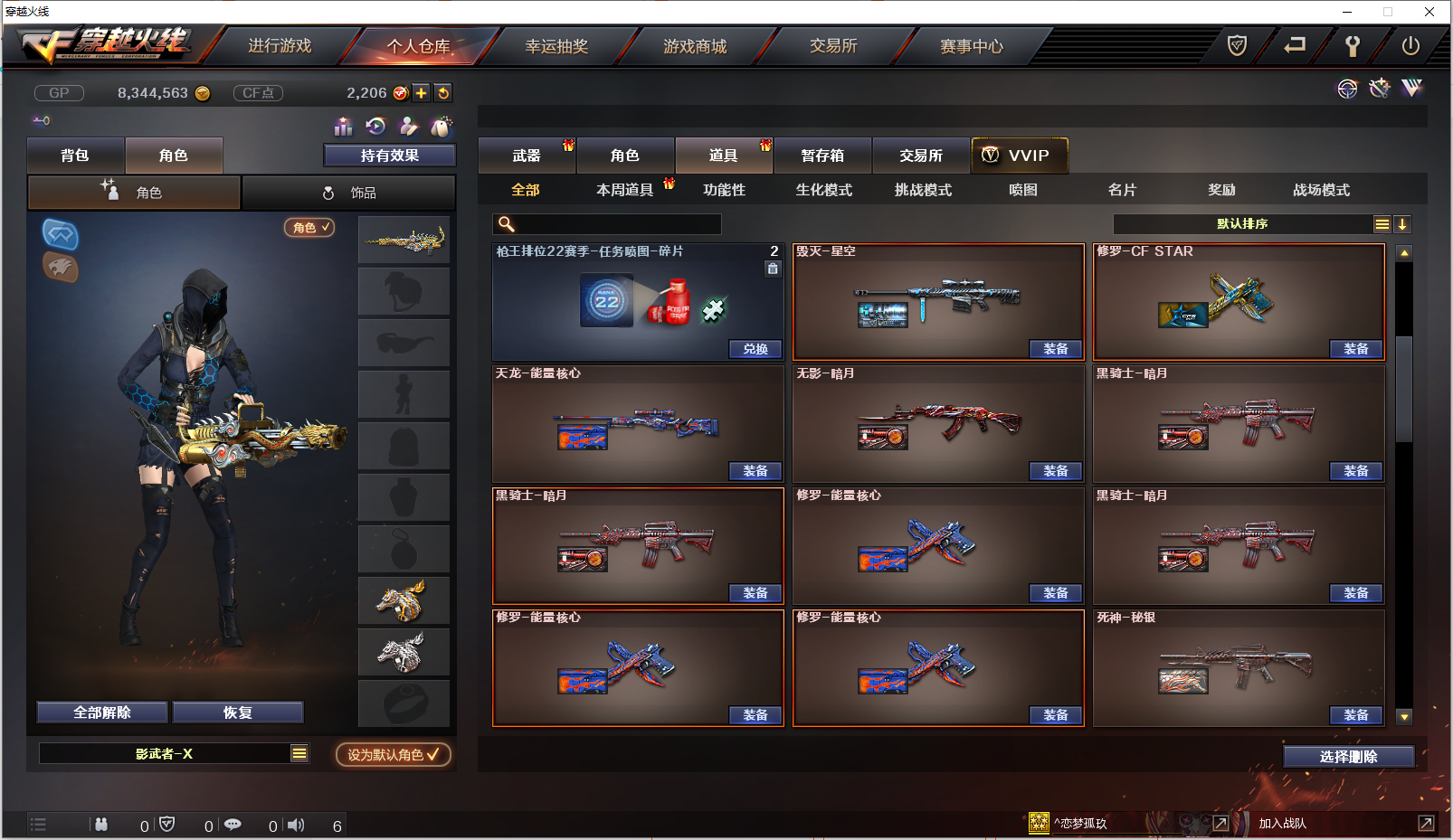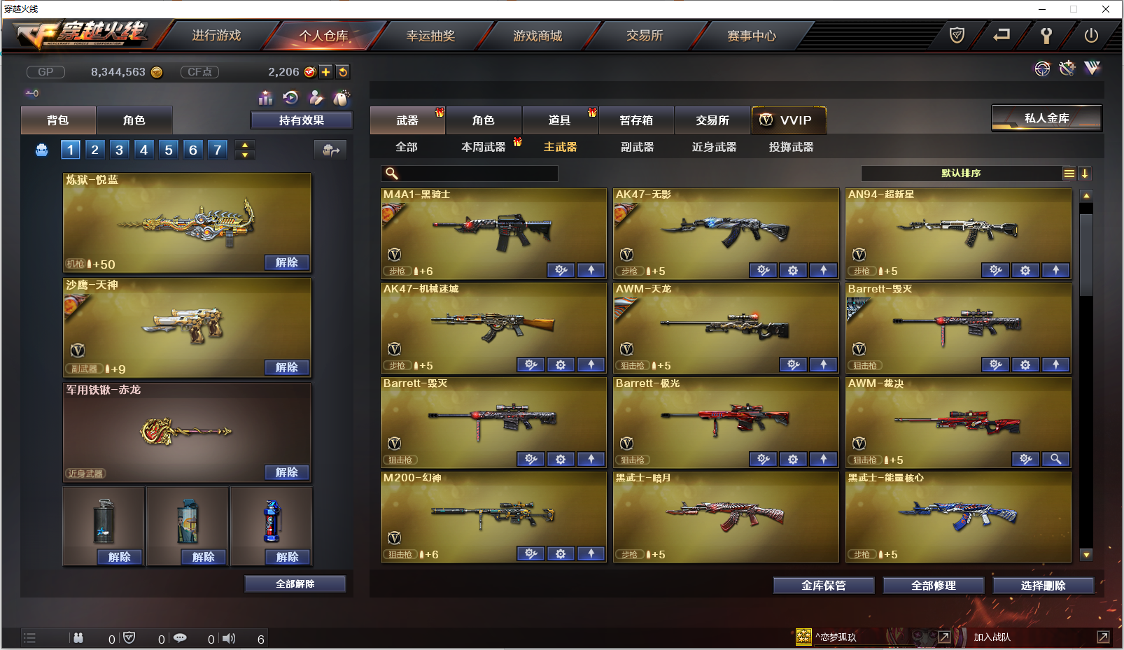 【主武器】金色小号 M200幻神 炫金天龙 炼狱悦蓝 源天龙*2 源猎神 源雷神 源火麒麟 御雷神机甲刑天 王者之影 王者之武 天启悦智 玫瑰精灵悦动 火麒麟能量核心*3 黑武士暗月 黑武士能量核心 裁决 极光 毁灭*2 天龙 机械迷城 超新星 无影 黑骑士*2 雷神*2 火麒麟*2 千变 乱世 死亡之眼 激光毁灭者III 苍雷