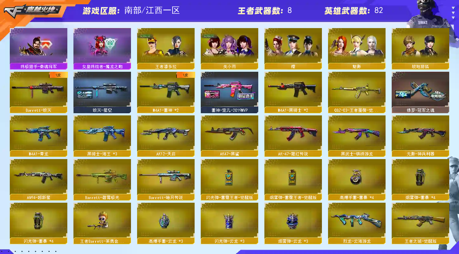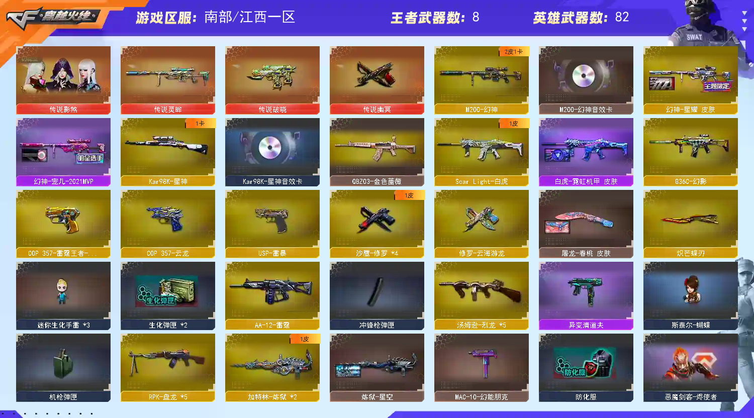 爆破有白虎 QBZ 雷神(宠儿皮) 传说灵眸 幻神(宠儿皮三件套) Usp雷暴 王者Cop G36 幻影 道具雷暴云龙全套 (此号已在公安备案,开挂必究)