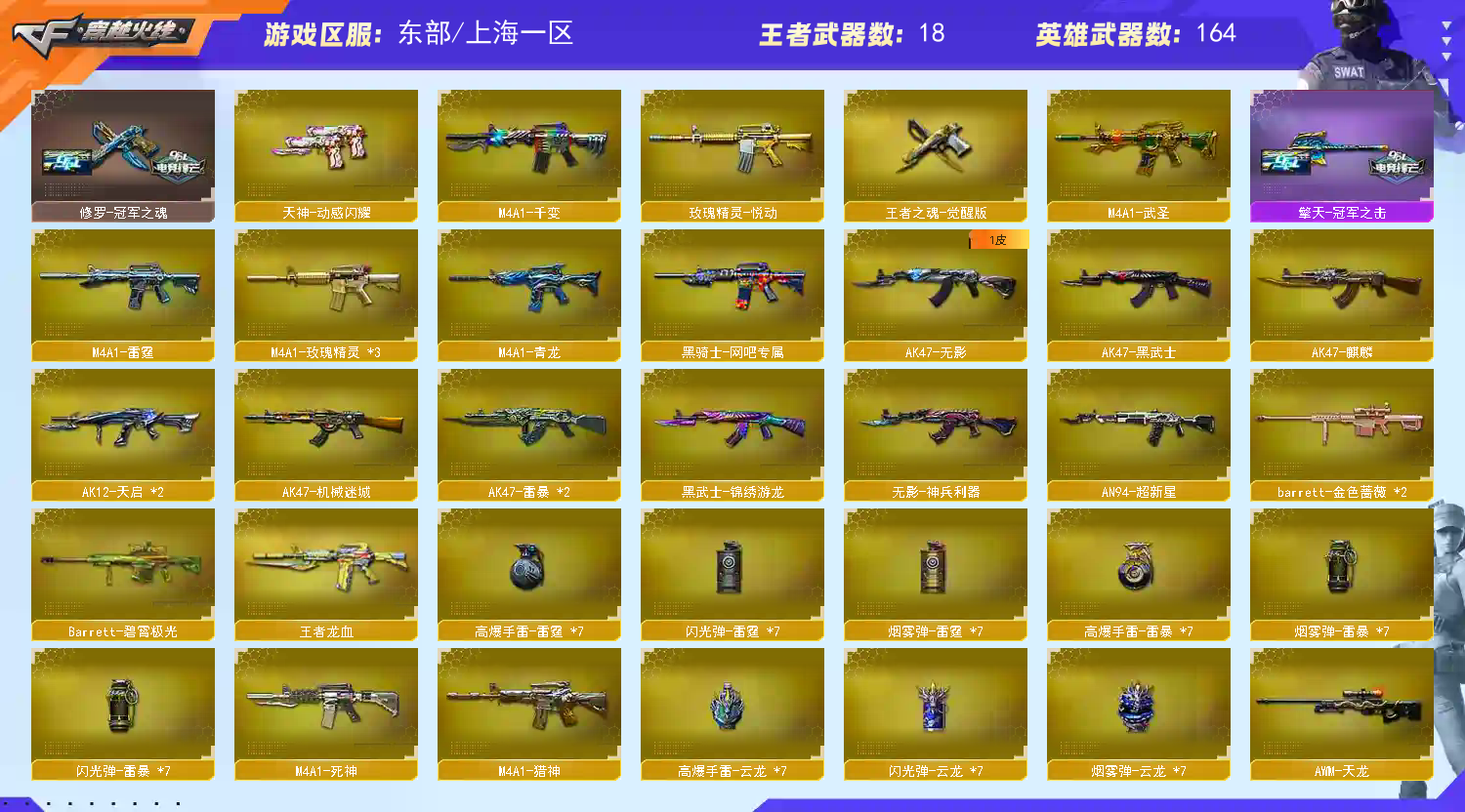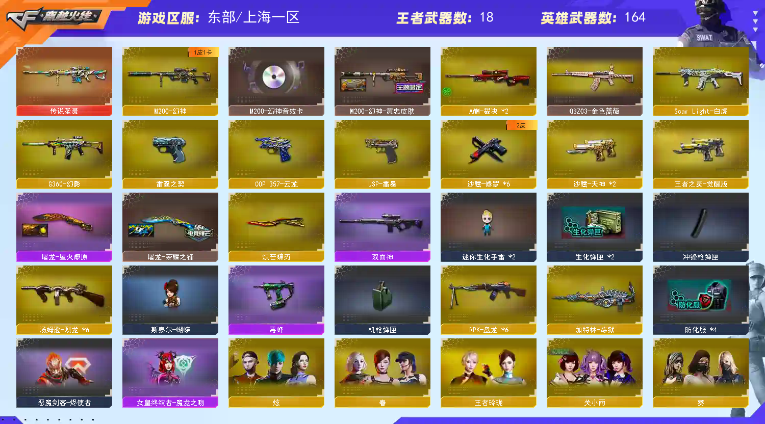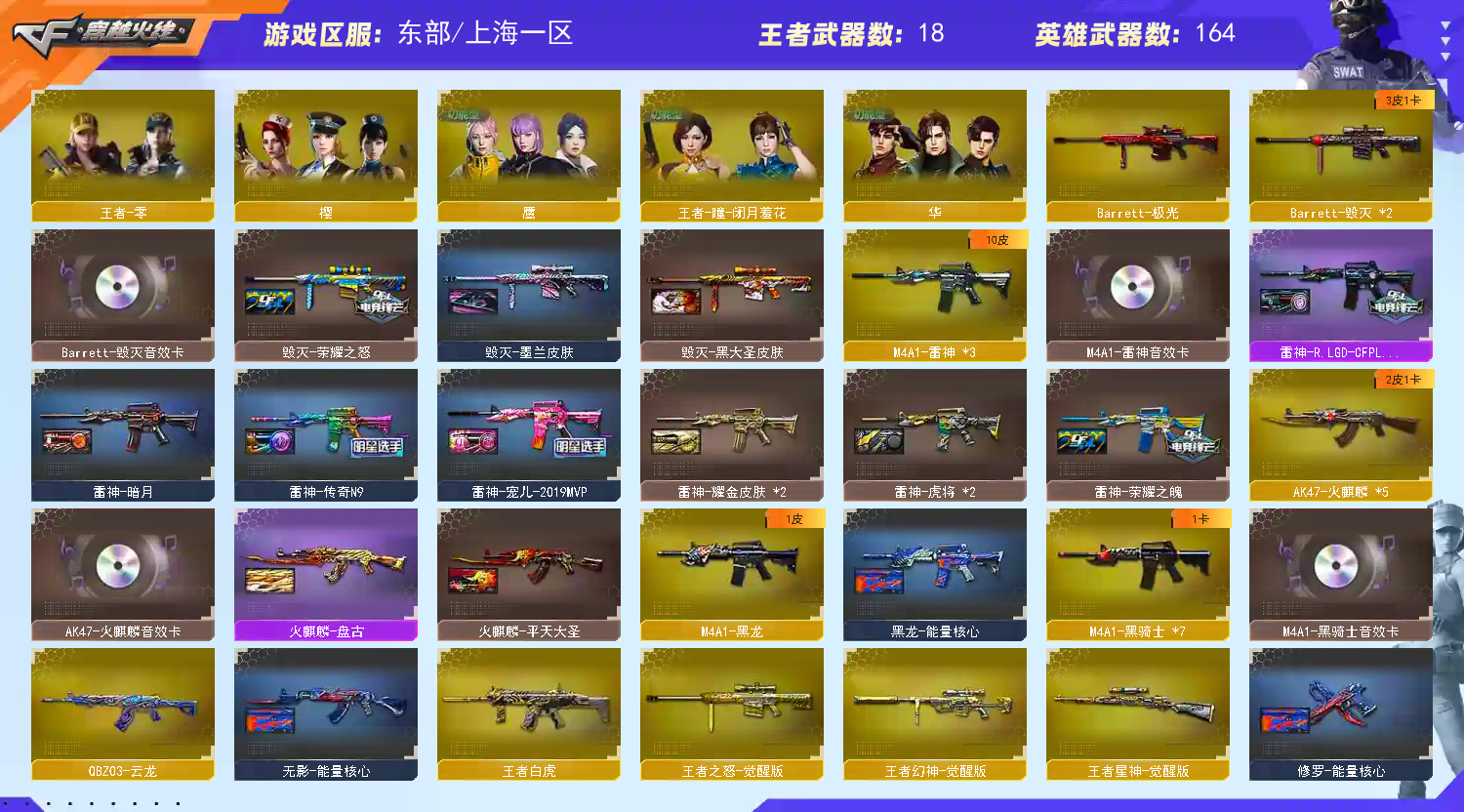 可排位 上海一区 180V 【传说圣灵】【m200-幻神m200-幻神音效卡幻神-黄忠usp-雷暴COP-雷霆炽芒蝶刃】【王者星神】【Scar白虎王者白虎】【QBZ金色蔷薇QBZ03-云龙】【毁灭毁灭音效卡毁灭-AG-CFPLS15冠军】【雷神雷神音效卡雷神-传奇N9雷神-宠儿-2019MVP雷神-荣耀之魄雷神-r.lgd-cfpls18冠军】【火麒麟火麒麟音效卡火麒麟-盘古火麒麟-AG战队皮肤】【黑骑士黑骑士音效卡】【黑龙】【QBZ03-云龙COP-云龙云龙扇云龙雷套】【AK47-雷暴usp-雷暴斩神刀-雷暴雷暴雷套】【M4A1-雷霆巴雷特雷霆COP-雷霆尼泊尔-雷霆雷霆雷套】【天龙裁决极光巴雷特-金色蔷薇】【千变无影死神黑武士天启超新星青龙玫瑰精灵猎神】【6盘6烈斯泰尔-蝴蝶毒蜂炼狱修罗天神glock18-武圣】【王者之心王者之影王者白虎王者冰魄王者龙血王者之幻王者之戮王者之魄王者幻神王者雷怒王者之力王者之怒王者星神王者之魂王者之灵王者之啸】【四防 关小雨鹰】【春华葵奇洋探员乔伊教练王者零王者瞳-闭月羞花王者玲珑樱炫】等一系列武器加道具