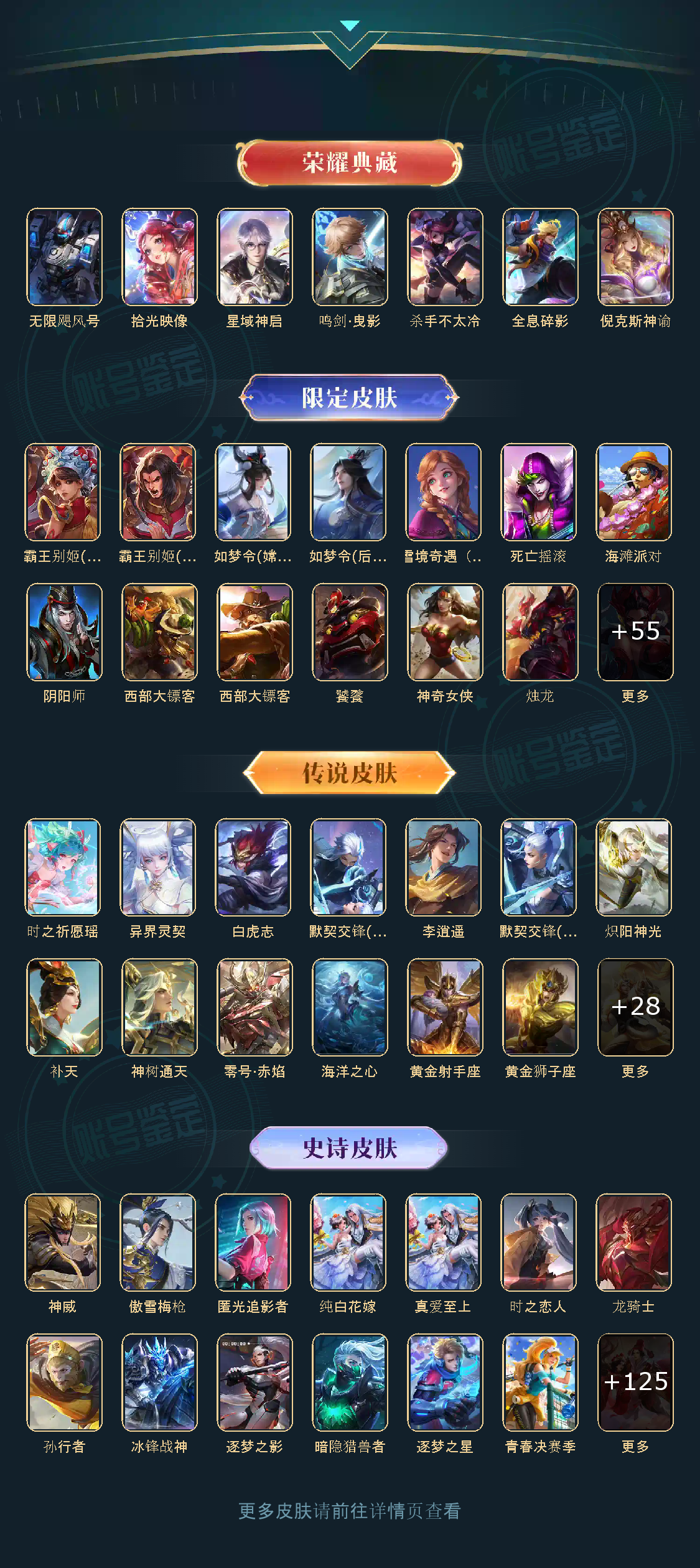 无限飓风号,鸣剑·曳影,星域神启,拾光映像,白虎志,默契交锋(兰陵王),李逍遥,默契交锋(花木兰),零号·赤焰,炽阳神光,神威,纯白花嫁,真爱至上,匿光追影者,时之祈愿瑶,补天,异界灵契,神树通天,傲雪梅枪
