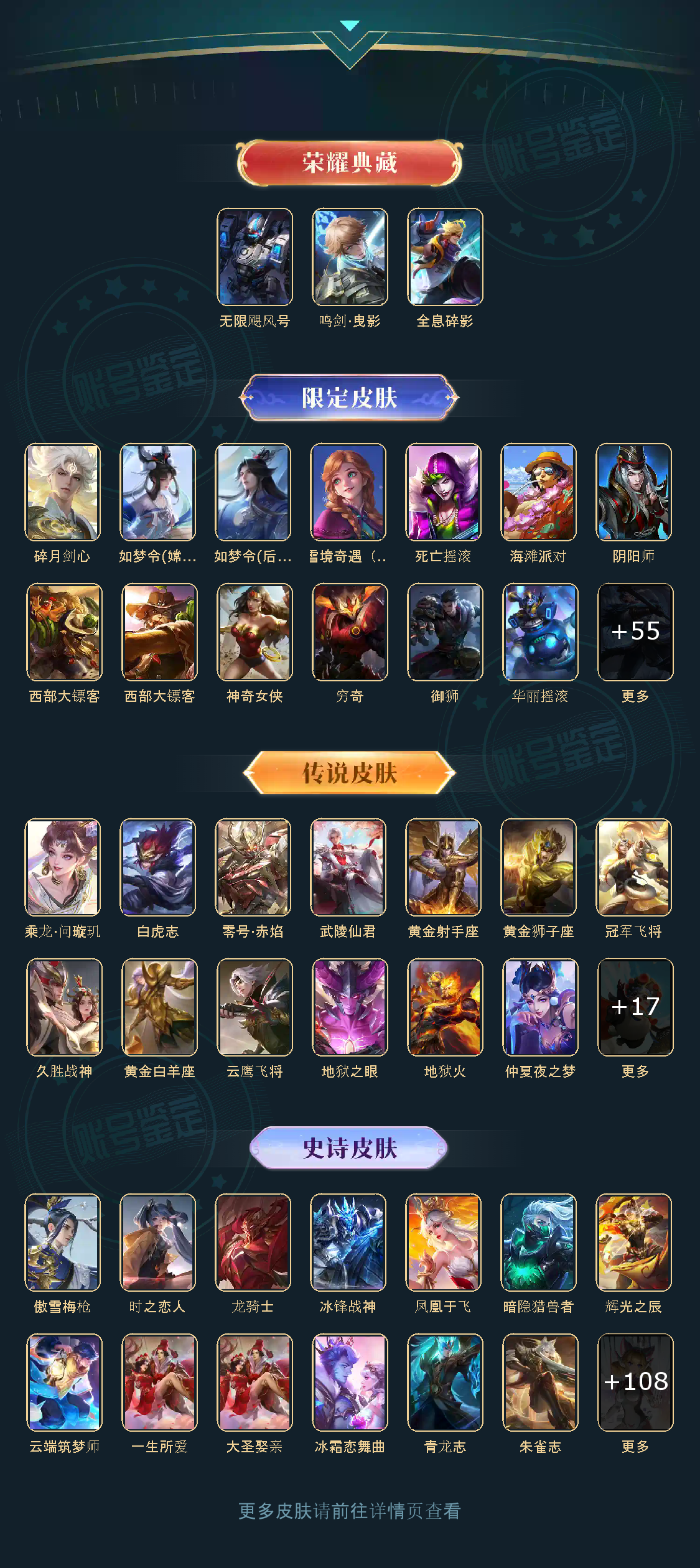 贵族等级V10,英雄数量123,典藏皮肤数3,皮肤数量389,至尊宝/无限飓风号/鸣剑·曳影