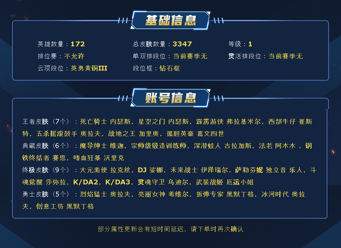 黑色玫瑰3000皮/️全英雄可下棋可排位/签名阿狸️名人堂卡莎/2圣堂/9终极️/140神话至臻/340限定