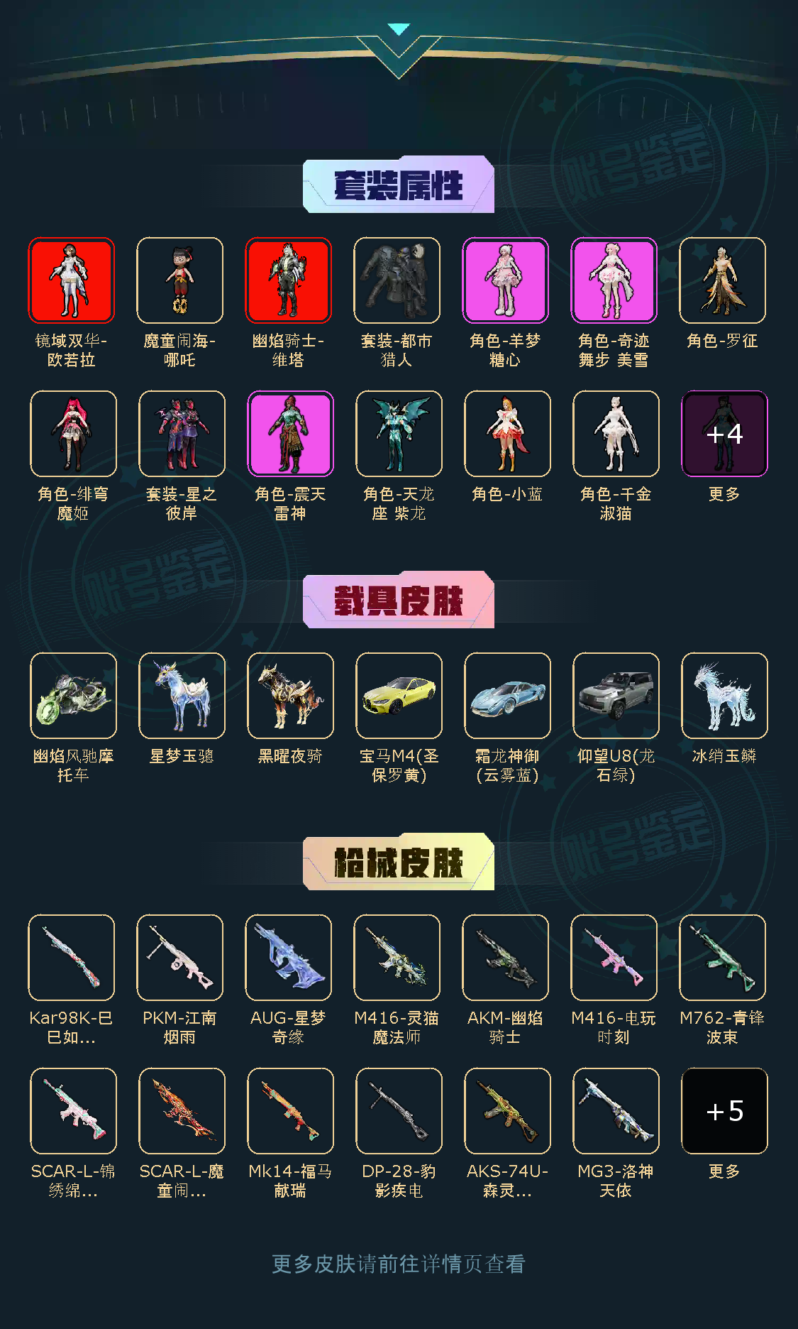 【稀有资产】幽焰骑士-维塔[1级]/角色-魔童闹海-哪吒[3级]/镜域双华-欧若拉[1级]/角色-千金淑猫/角色-羊梦糖心/SCAR-L-魔童闹海 哪吒/M416-电玩时刻/AUG-星梦奇缘/M416-灵猫魔法师/AKM-幽焰骑士/角色-Mark.06/套装-龟仙人/套装-极光猎影/玩偶服-卖崽青蛙/玩偶服-懒羊羊/玩偶服-美羊羊/玩偶服-喜羊羊/角色-粉雾星云/角色-申公豹/角色-敖闰/角色-临安公主/角色-灵公主/角色-银尘/角色-情公主