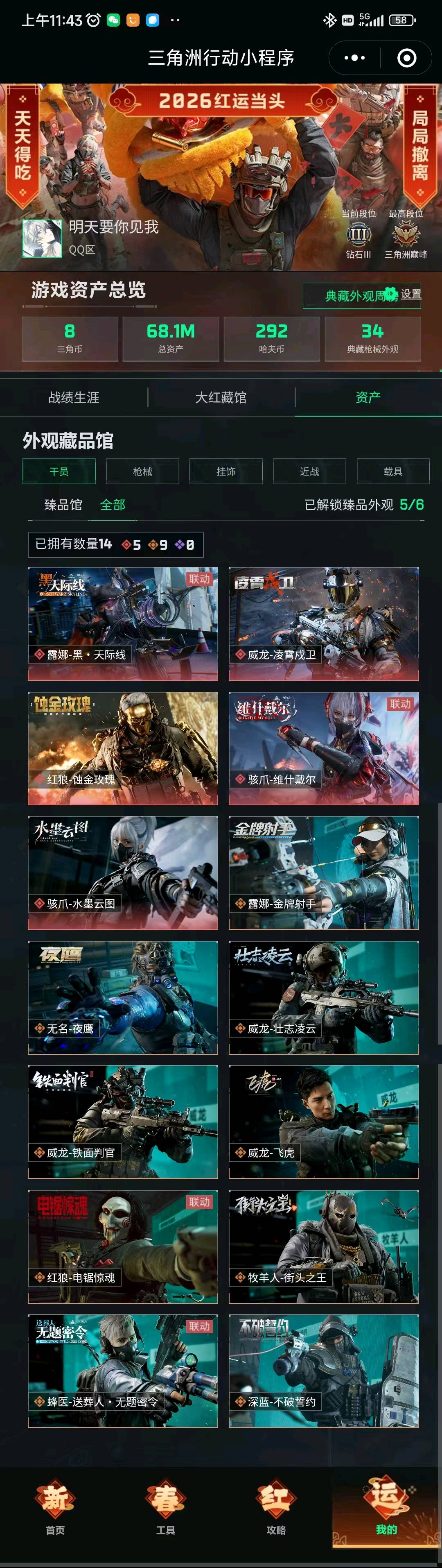 【全平台】 威龙凌霄戍卫♦️5红6刀2砖皮♦️M7棱镜攻势腾龙气象♦️暗星北极星怜悯♦️信条吴彦祖♦️开挂锁IP