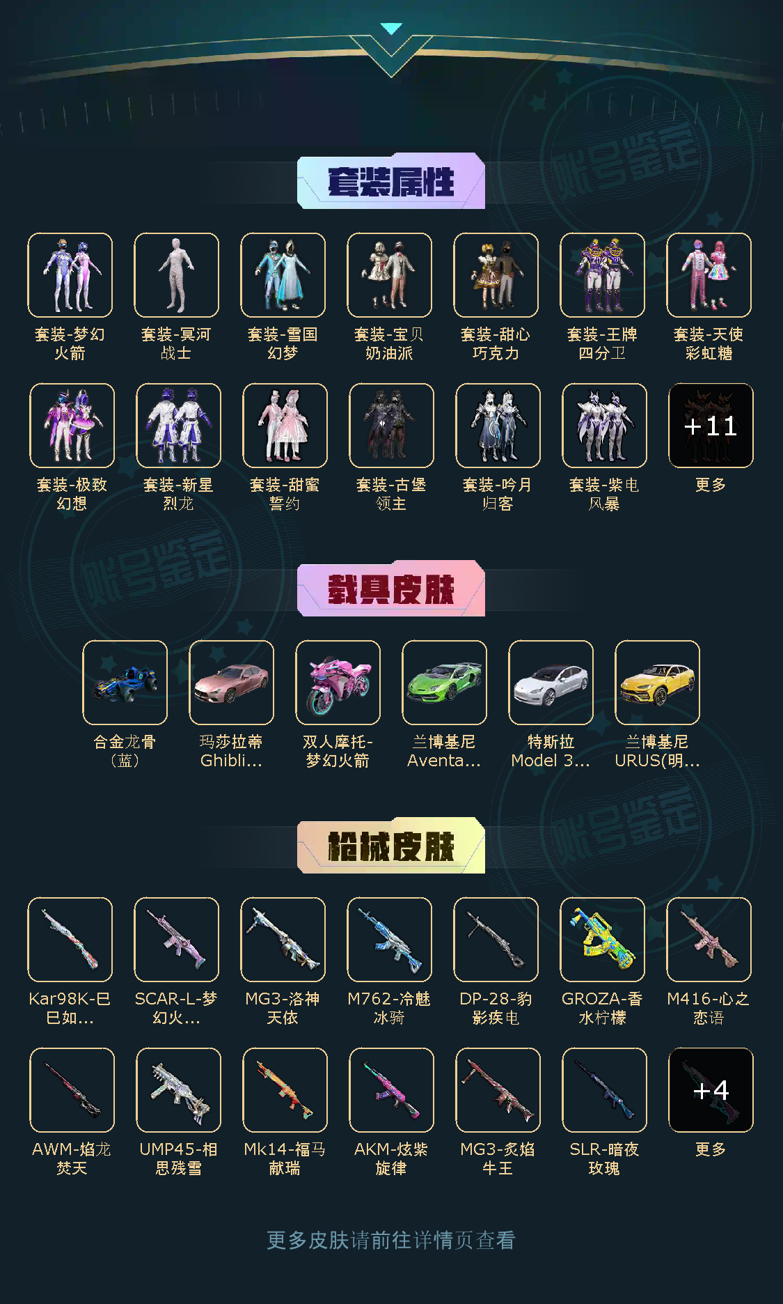 【粉色枪皮】GROZA-香水柠檬/Kar98K-巳巳如意/MG3-洛神天依/M762-甜蜜誓约/AKM-炫紫旋律/Kar98K-伏魔团/AWM-焰龙焚天/UMP45-相思残雪/SLR-暗夜玫瑰/M762-冷魅冰骑/DP-28-豹影疾电/MG3-炙焰牛王