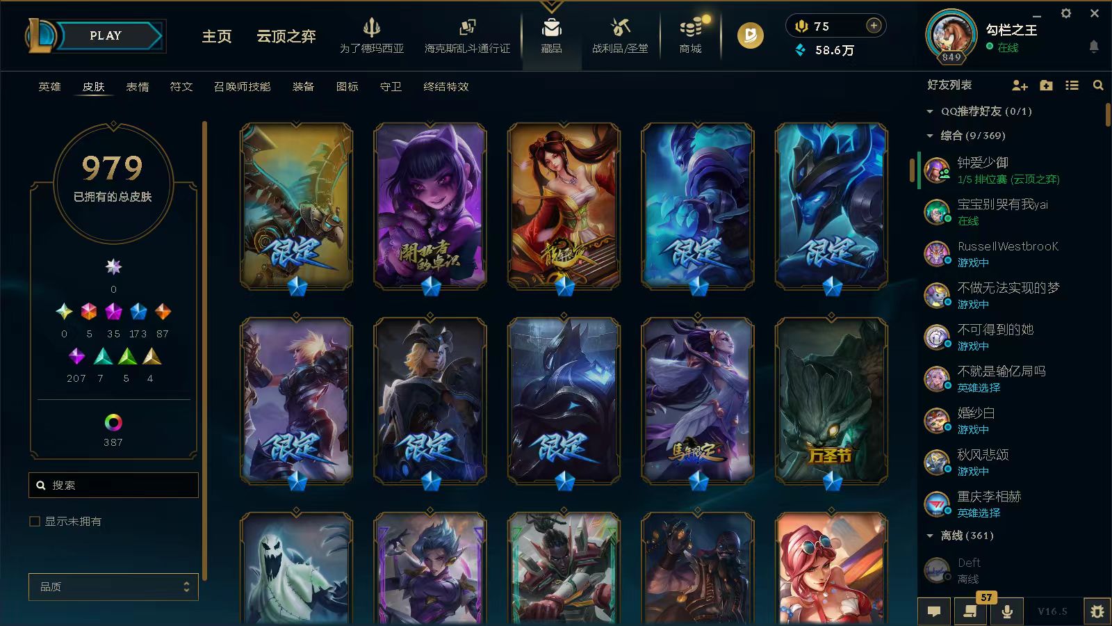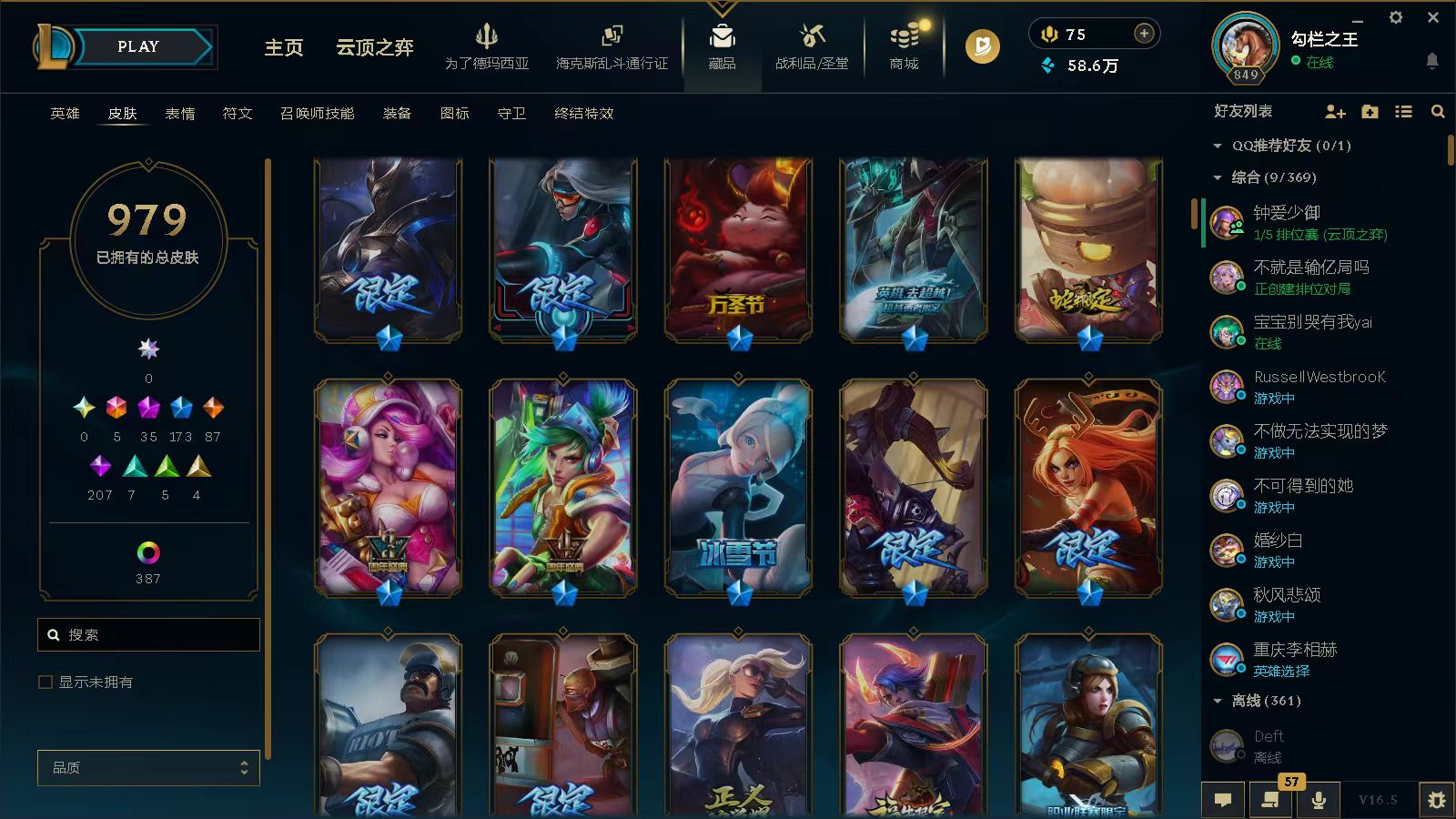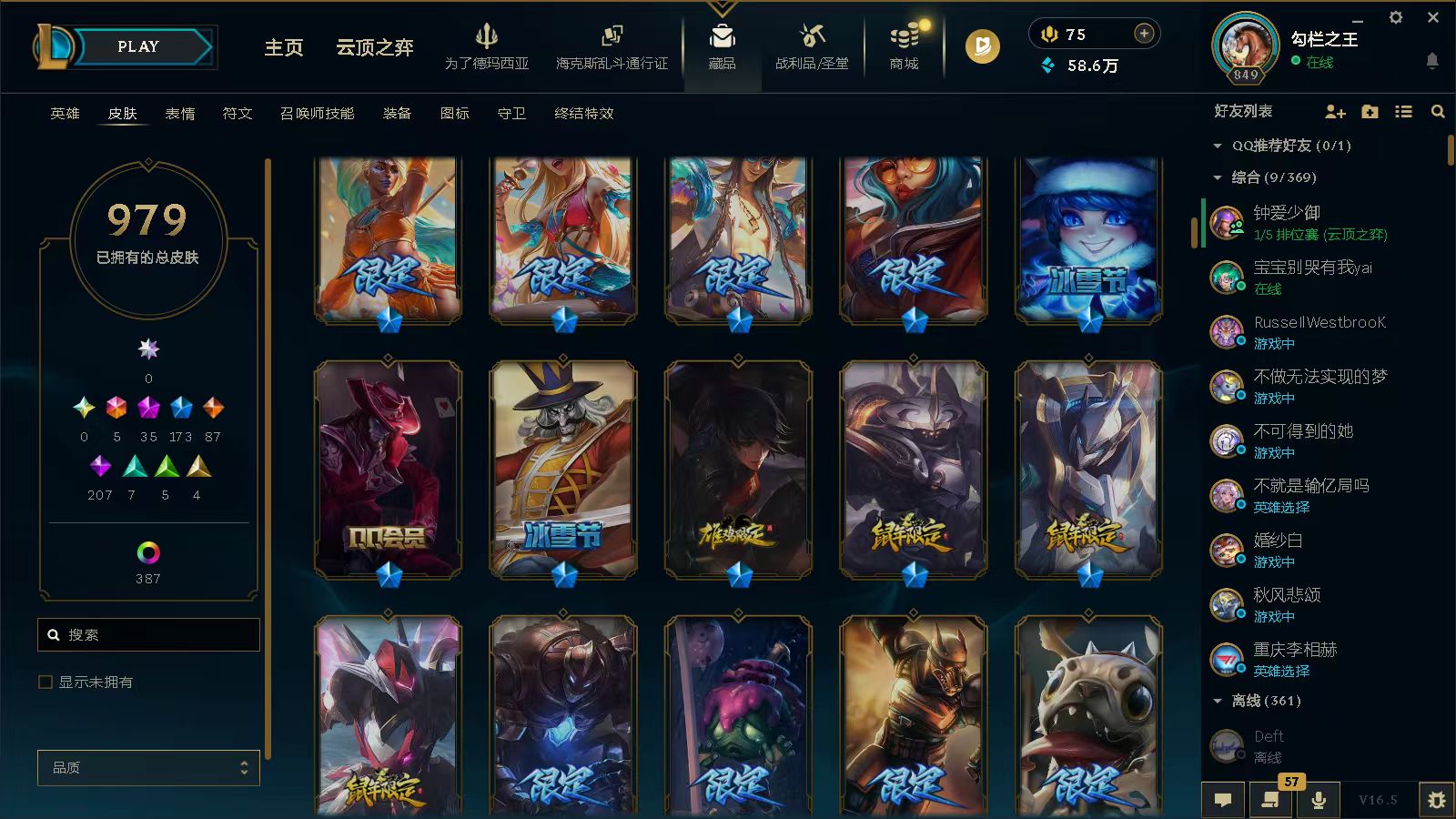 黑色玫瑰⭐1410皮5终极35神话173限定⭐龙瞎⭐哥特安妮⭐花木兰⭐羊年金克丝⭐赵云子龙⭐龙刀