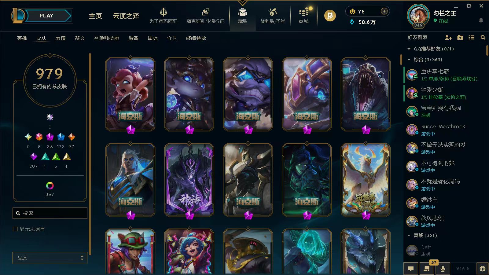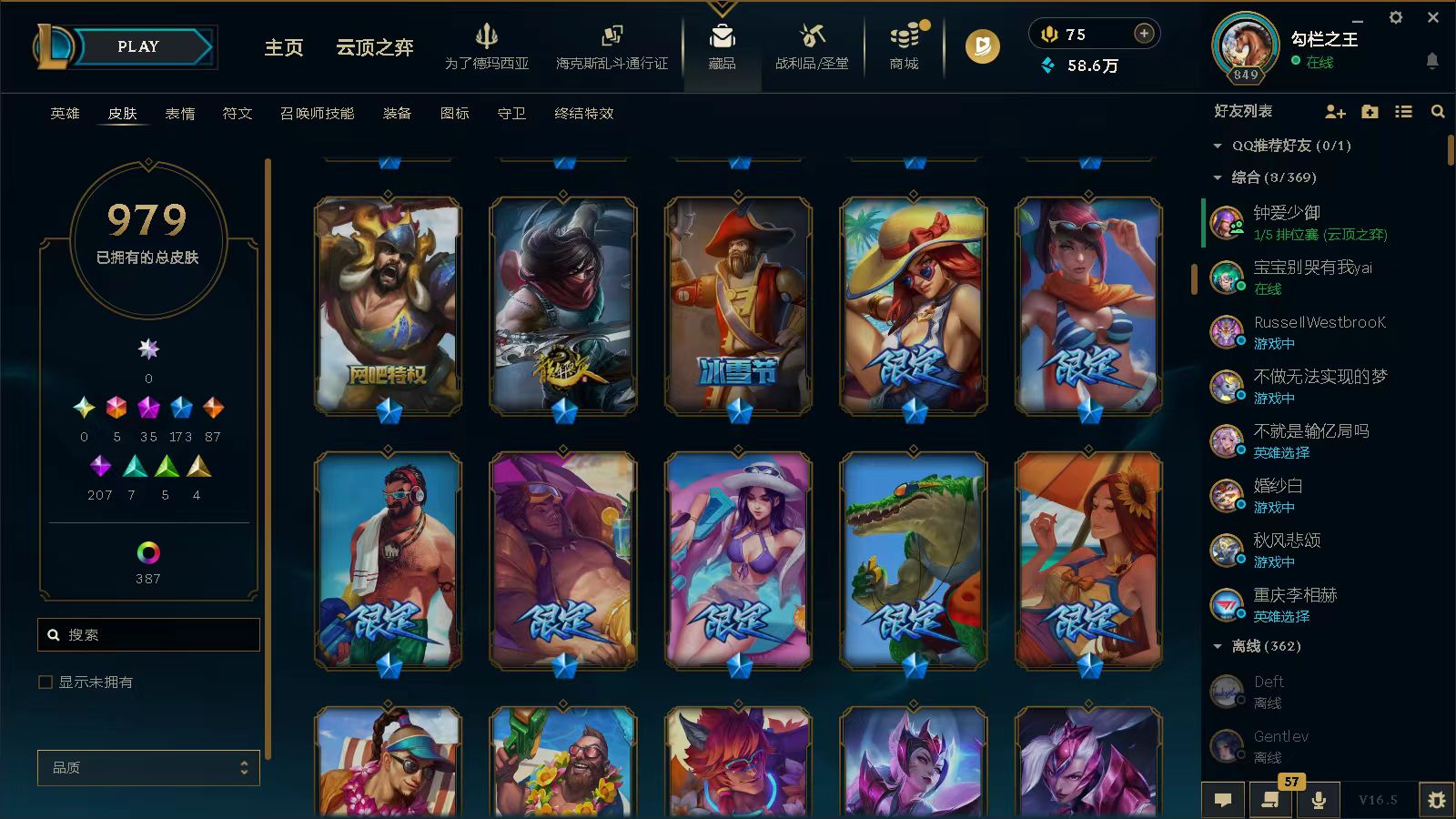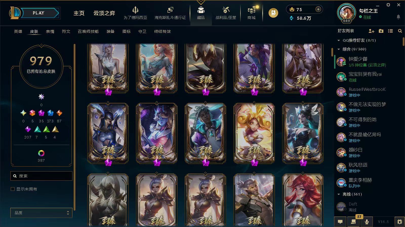 黑色玫瑰⭐1410皮5终极35神话173限定⭐龙瞎⭐哥特安妮⭐花木兰⭐羊年金克丝⭐赵云子龙⭐龙刀