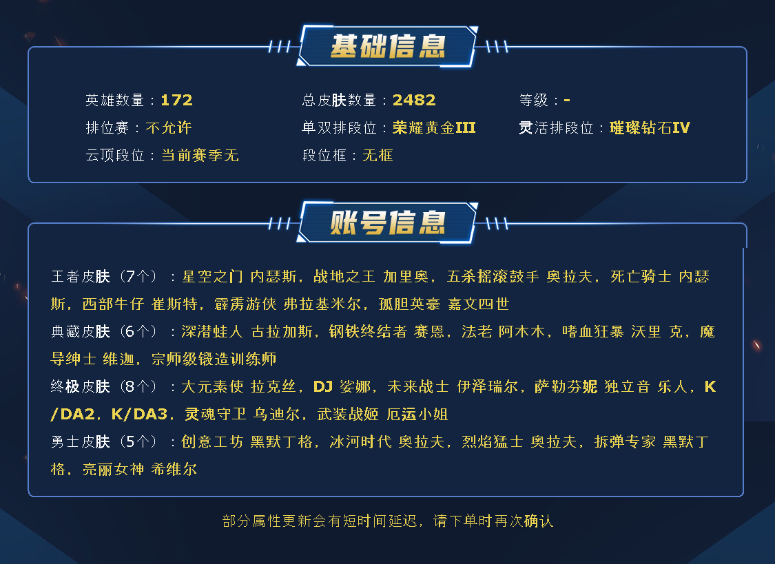 2400皮丨双千皮丨原皮1412丨72神话丨1000炫彩丨46臻彩丨126传说★天龙之子龙年套丨冰原酒桶丨莲花之令卡尔玛丨北极星神皎月