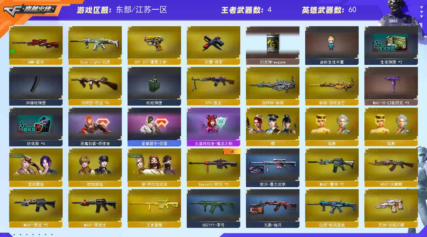 【允许排位】60v/5王者双全装/6烈龙/星神炽天使/COP雷霆王者/白虎/王者之心/炼狱/刀齐全/樱/狐影