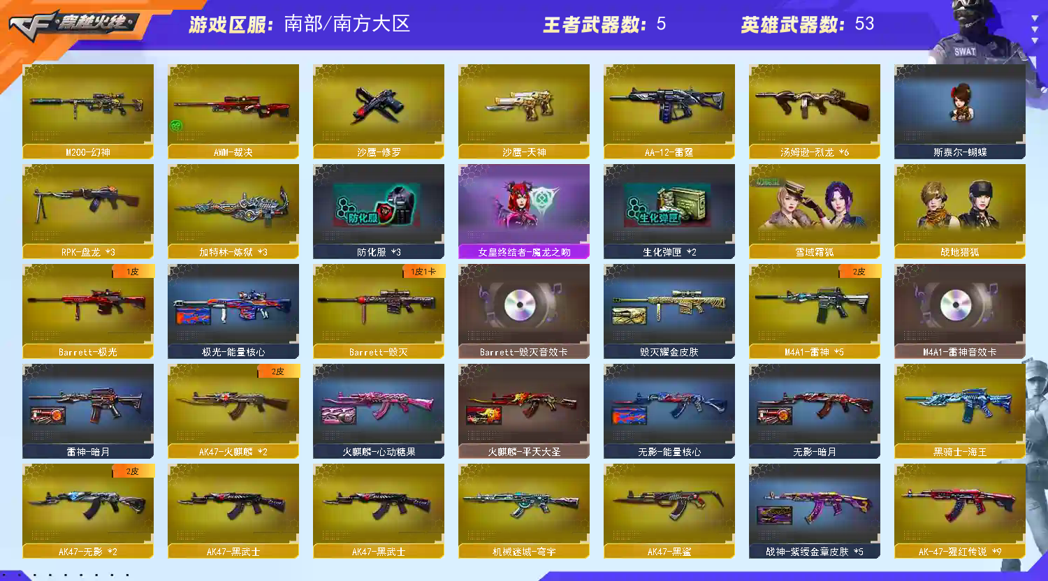 六烈 斯太尔蝴蝶 捕食者之眼+佣兵觉醒,m200幻神,53v,王者之武,王者之心,王者之翼,朱雀,毁灭+音效卡,雷神+音效卡,生化装备齐全,三盘龙,三炼狱