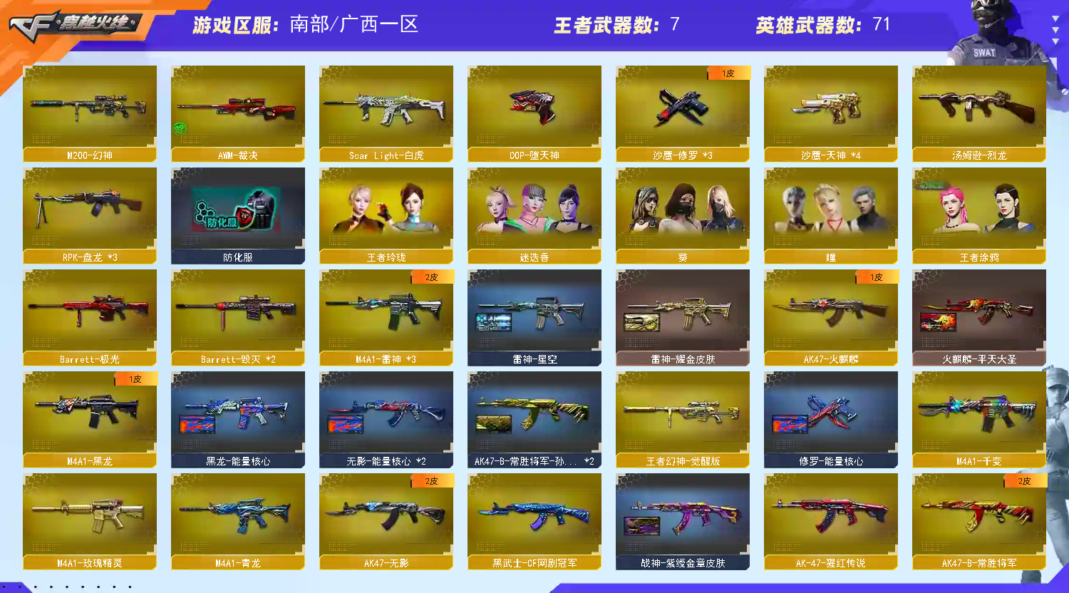王者幻神|CF网剧冠军武器套装|可排位|角色瞳葵|火麒麟雷神天龙毁灭极光千变黑龙无影|天神修罗龙啸擎天屠龙麒麟刺|爆破全装号