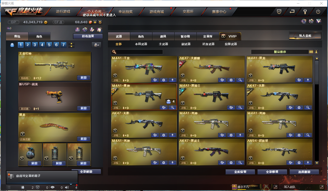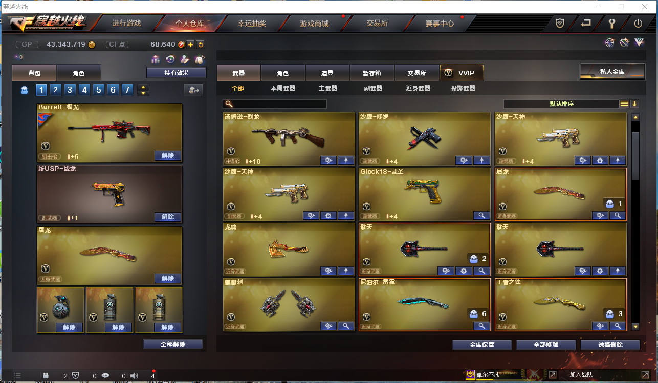 主武器:王者幻神 星神 雷暴套 金色蔷薇 千变 火麒麟 雷神 王者冰魄