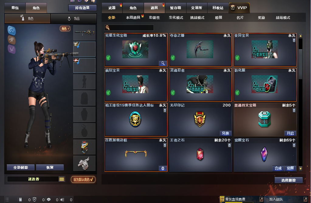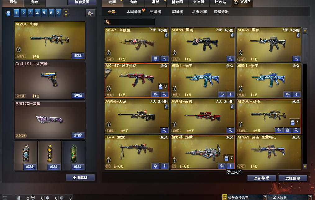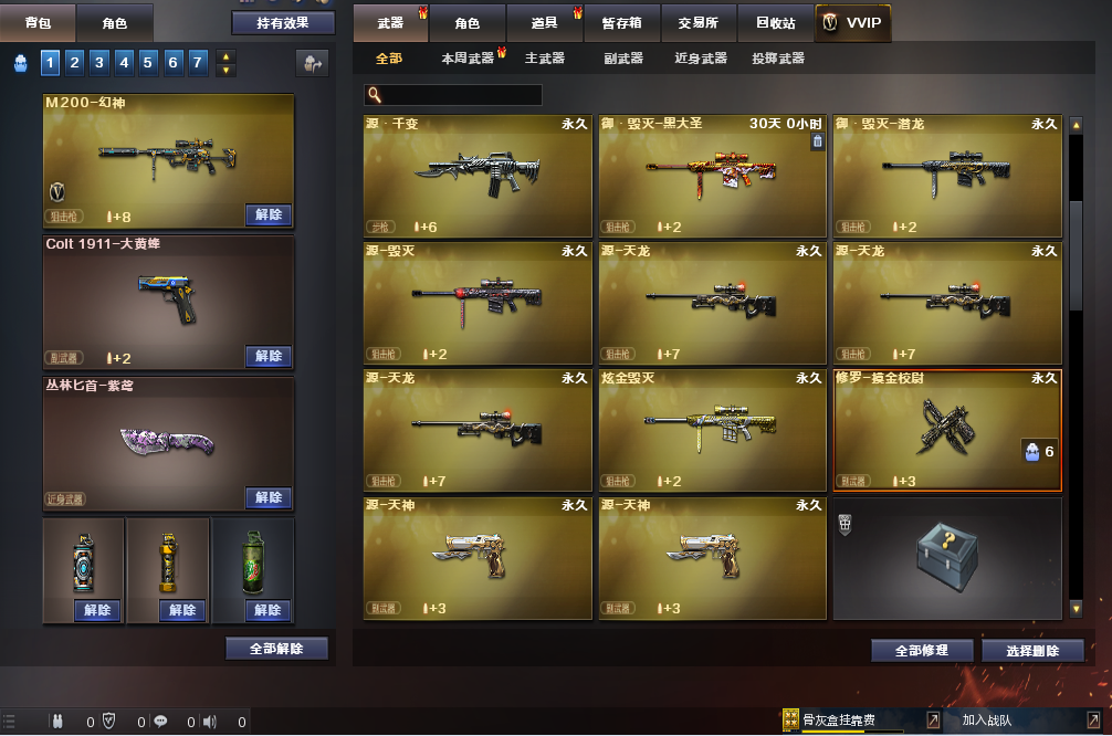 可排位-M200-幻神 灵狐者X 虎妞 妲己 小龙儿-淘气 迷失香 炫金毁灭 盘龙 炼狱 全源武器 永久生化道具 爆破全装
