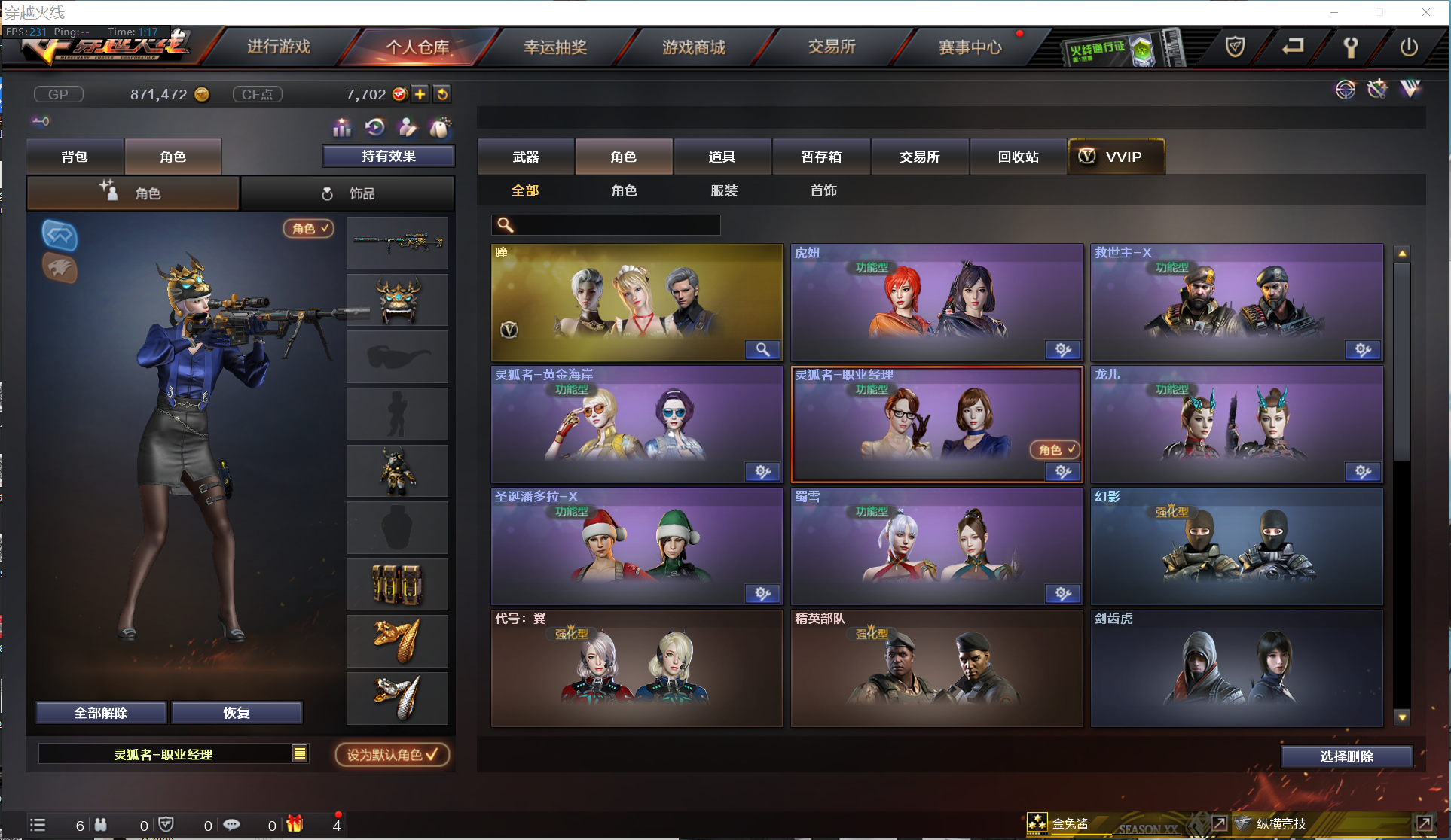 【角 色】:上将等级、瞳、晴雅、新海豹突击队、灵狐者职业经理(佣兵觉醒)、灵狐者黄金海岸、超级背包、金蛇戒指、银蛇戒指、8周年戒指