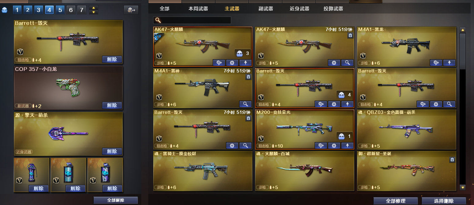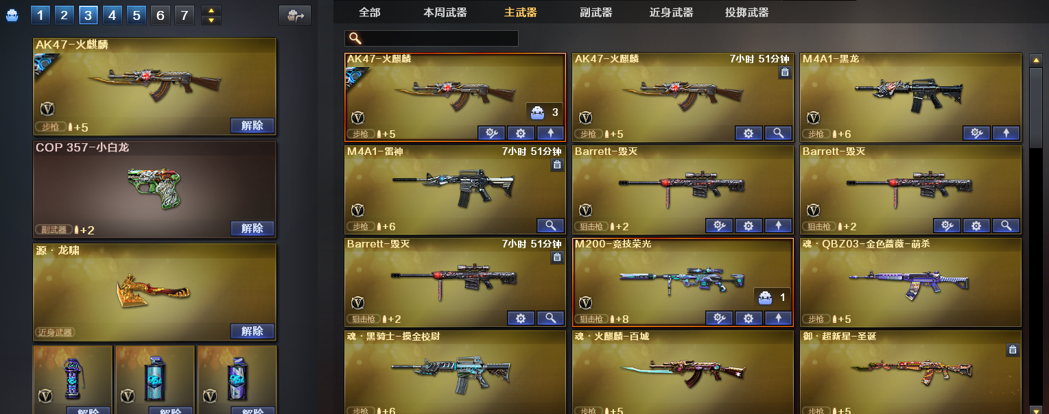 M200-幻神竞技荣光,98k-星神,火麒麟-雷神皮肤,黑龙,毁灭,魅影,屠龙,擎天,竞技荣光雷套