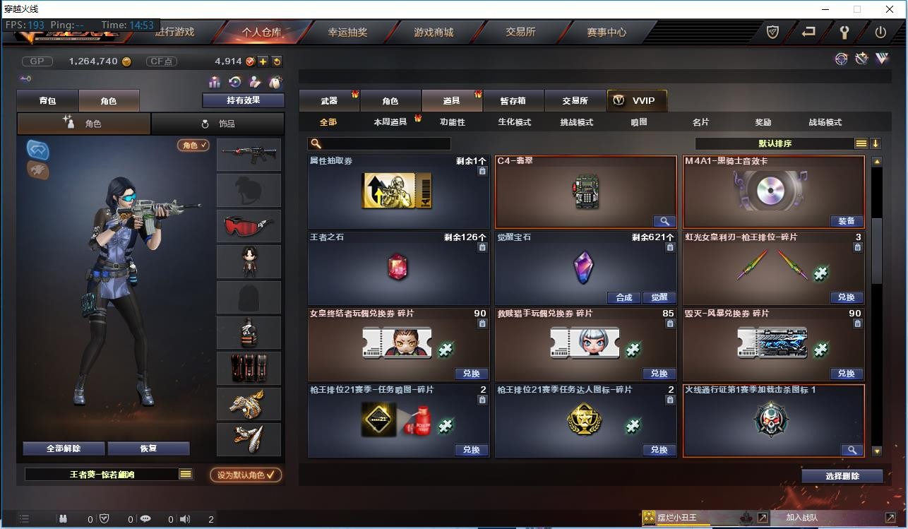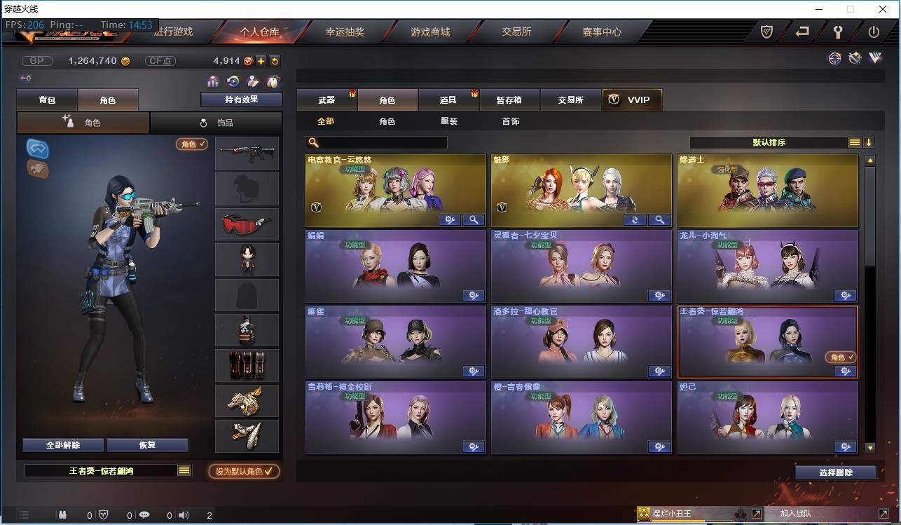 【角 色】:元首等级、王者葵(佣兵觉醒、捕食者之眼)、电竞教官云悠悠、魅影、修道士、王者玲珑、新娜塔莎、影舞者X、堕落天使、兰、深海之兰、夜玫瑰、威锋、烟雾保护头盔、闪光护目镜、炫彩背包、双龙戒指