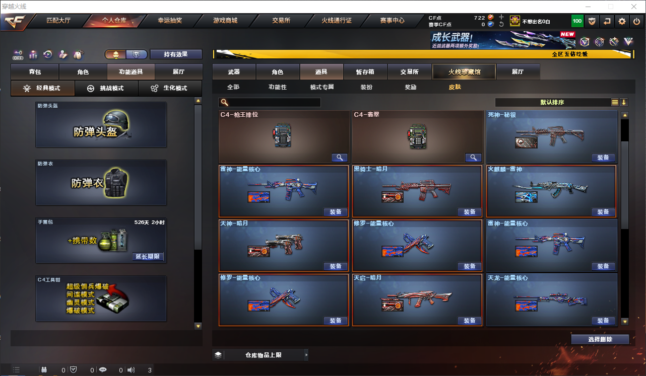 150V斯太尔蝴蝶CFS皮肤/各种玩偶/各种光效/龙血/裁决/6盘龙/炼狱/6烈龙/王者之击/7雷暴套/王者之翼/王者之魄/王者之光/王者之怒/王者之锋/炫金修罗/炫金毁灭/炫金天龙/炫金超新星/激光毁灭者/神圣爆裂者/王者零角色............