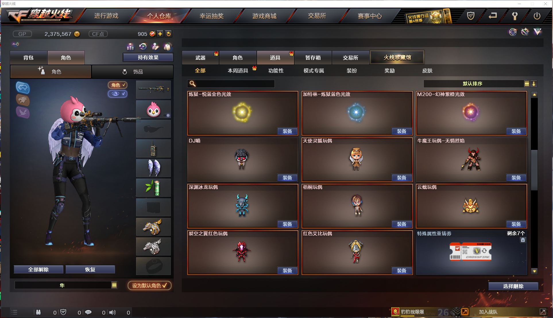 M200幻神|最新隼岚兮儿|6盘龙加特林炼狱|M4幻灵|幻灵套装|天使灵狐玩偶|生化爆破全装号