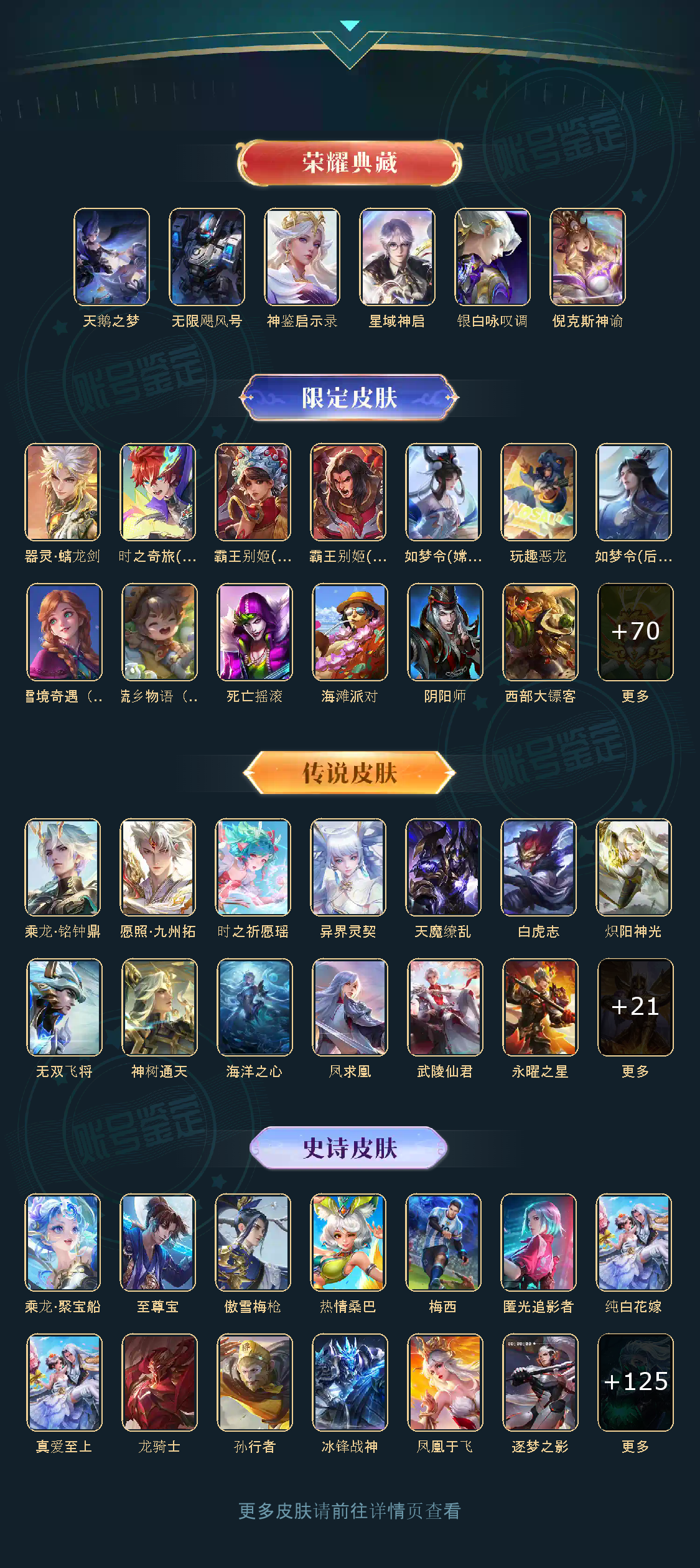 贵族等级V10,英雄数量124,典藏皮肤数5,皮肤数量429,