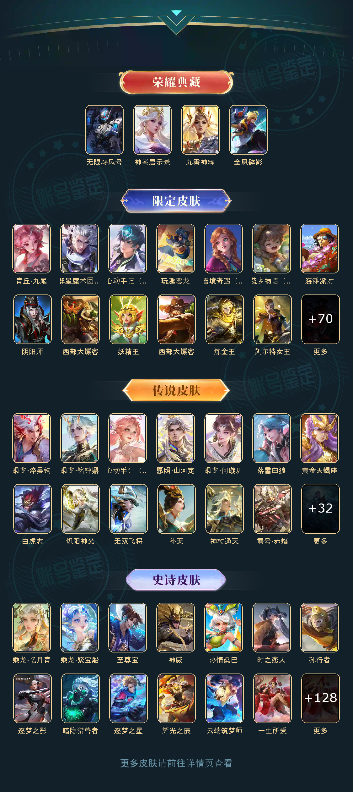 贵族等级V10,英雄数量125,典藏皮肤数4,皮肤数量427,无限飓风号/全息碎影