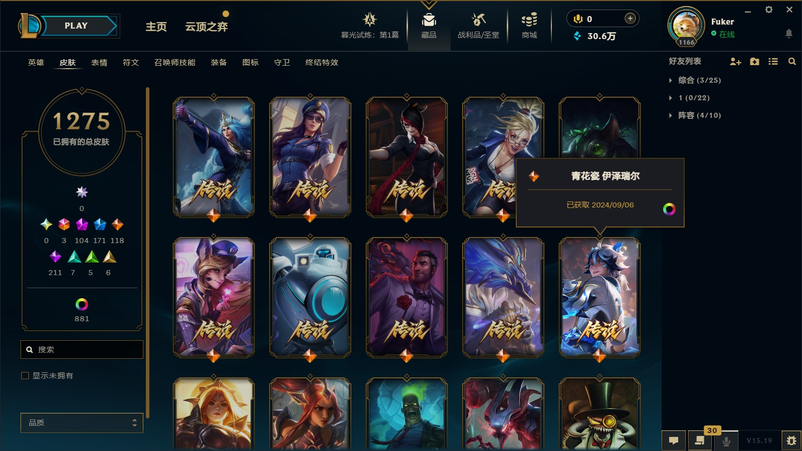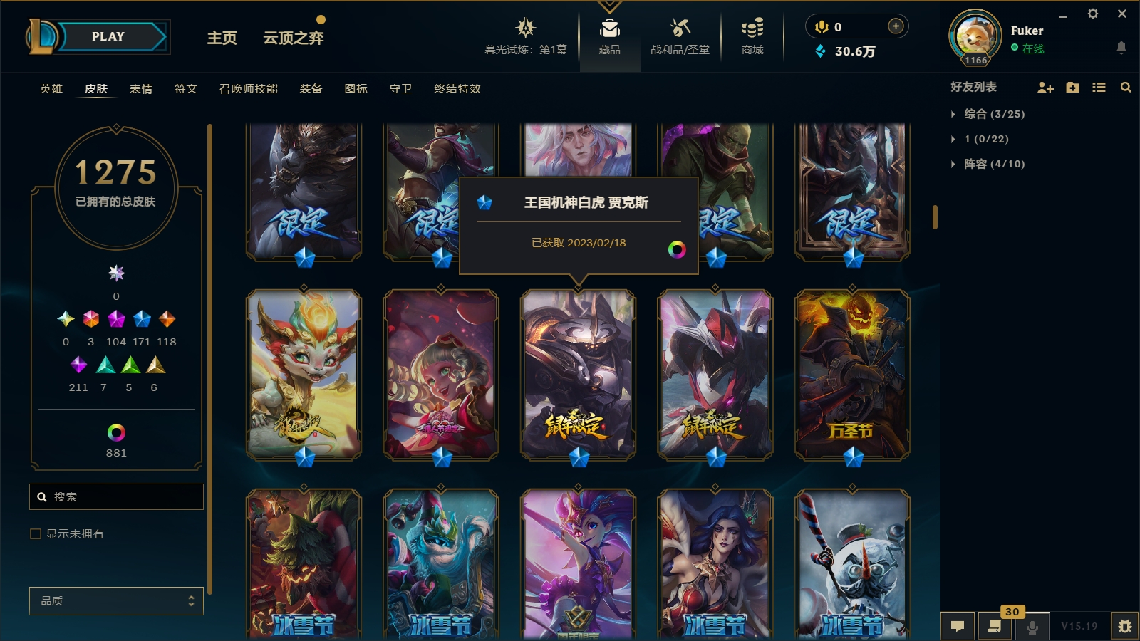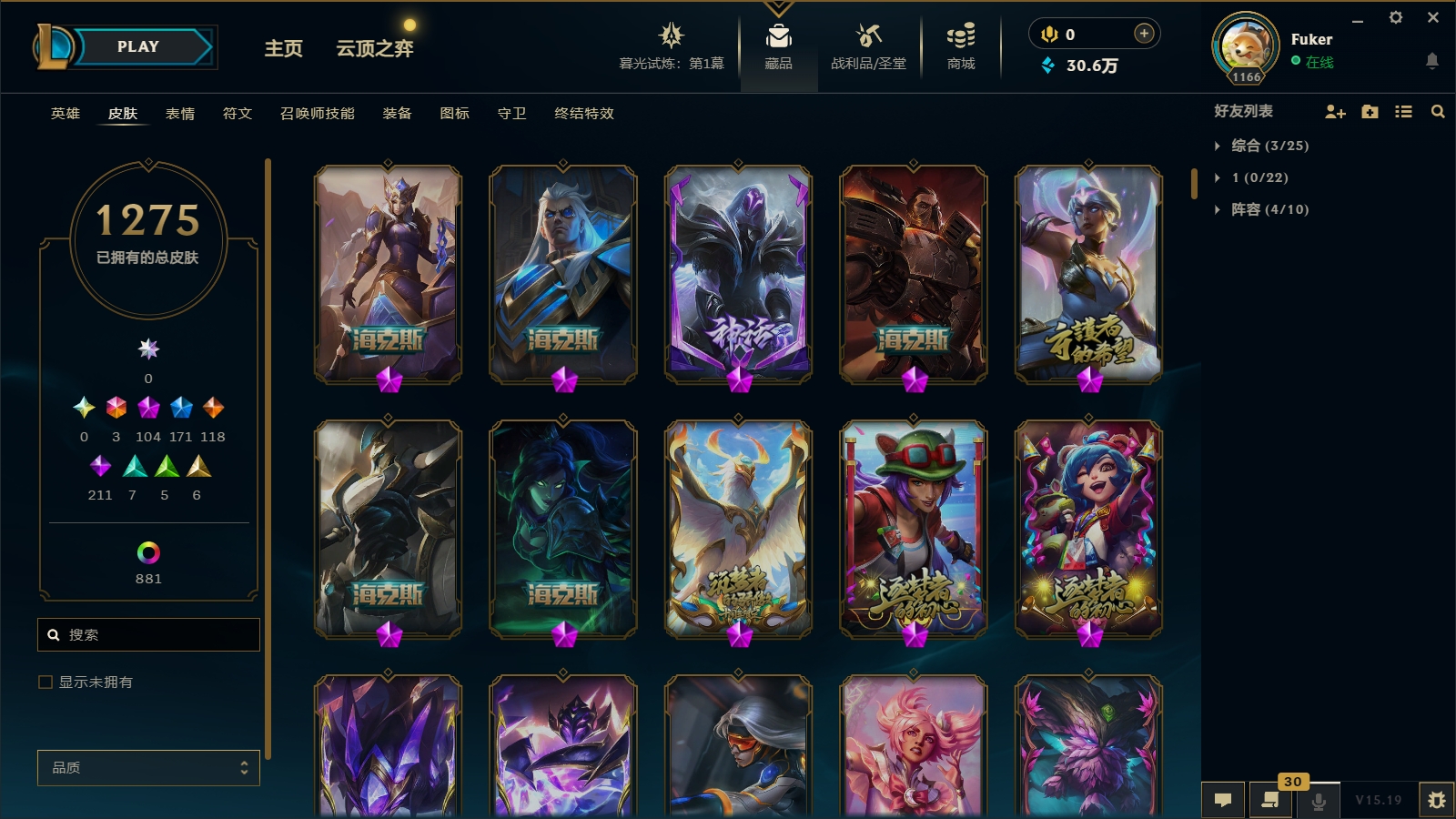 2600皮肤〓106至臻海克斯〓摄魂恐惧〓玉剑男女刀〓鼠年武器蕾欧娜〓张辽勇敢的心〓黑夜黎明