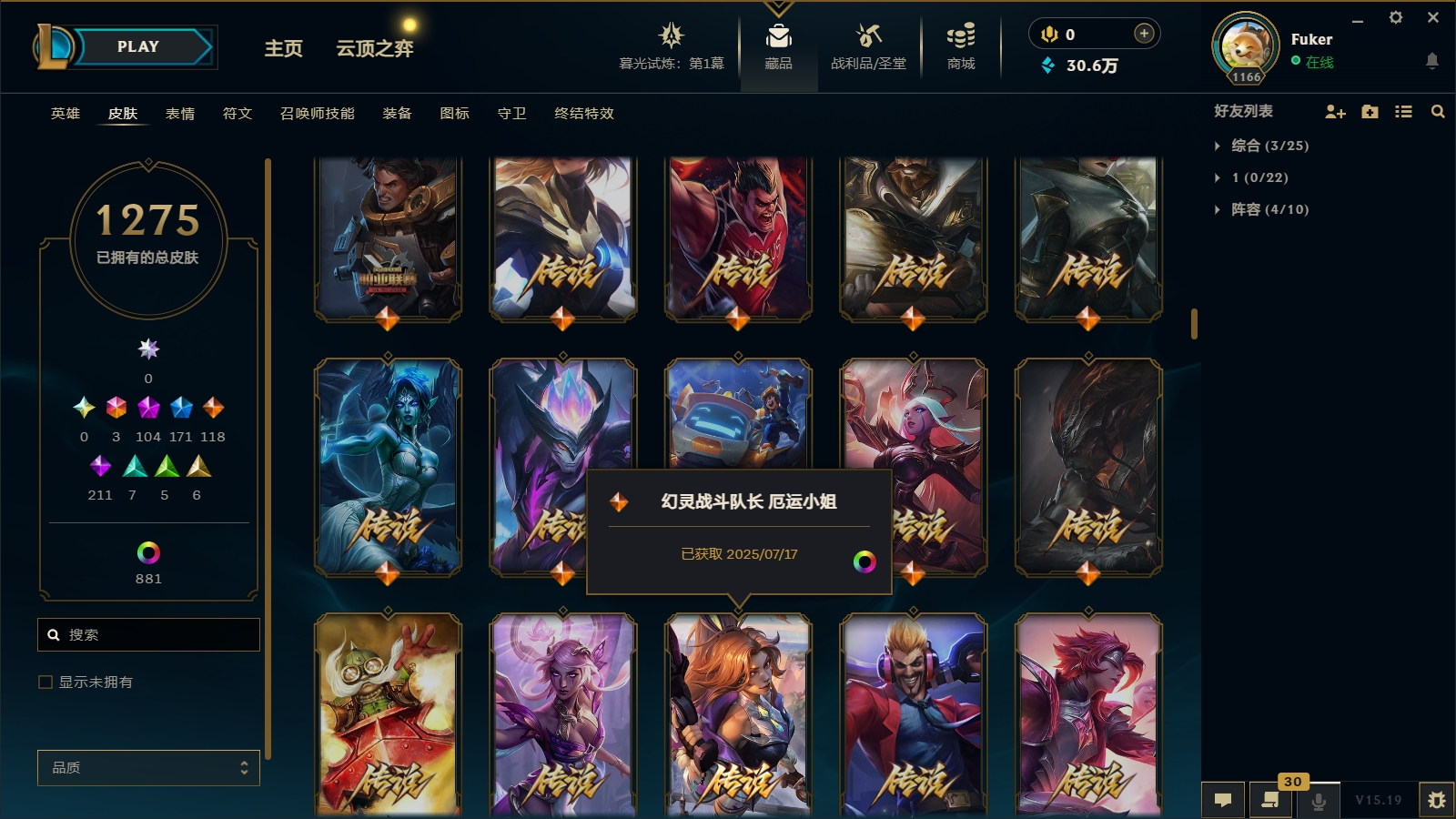 - 神话皮肤数量: 107