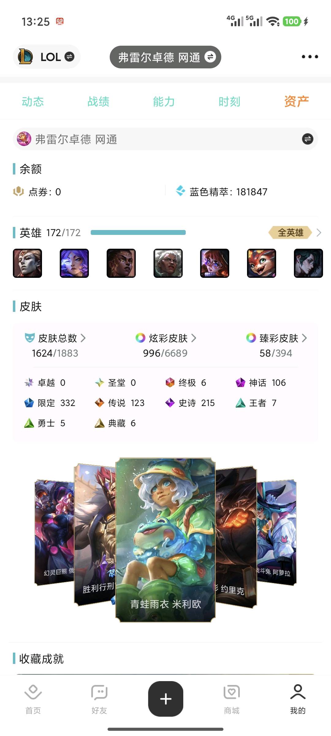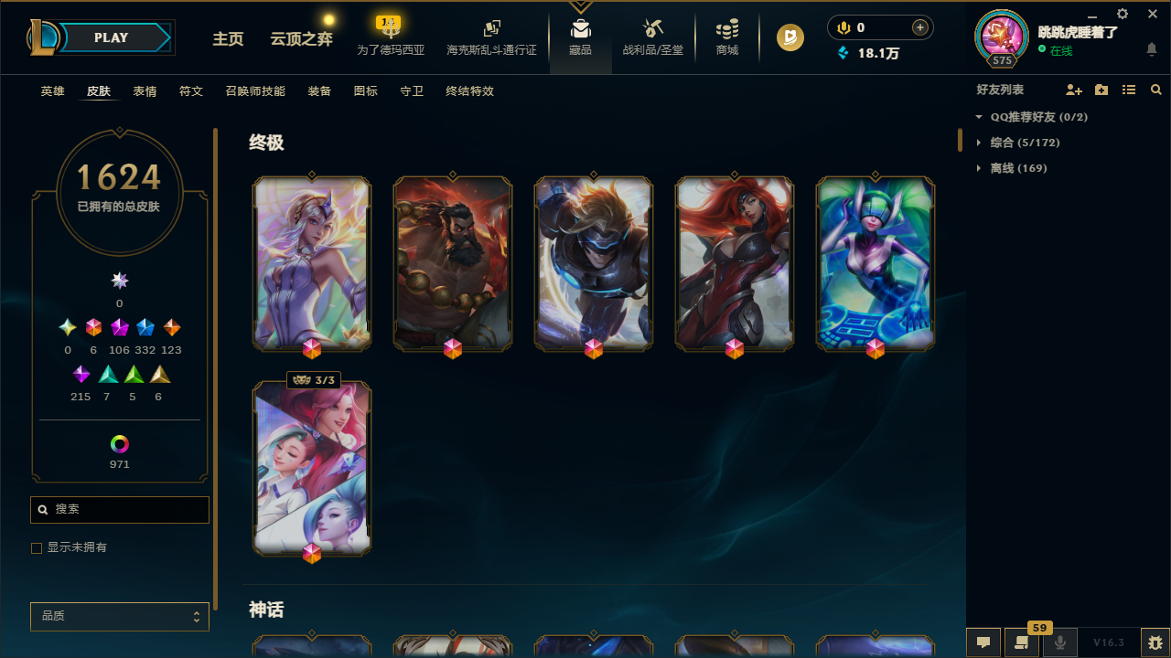 弗雷尔卓德2600皮丨1624原皮丨996炫彩丨332限定丨106神话丨58臻彩