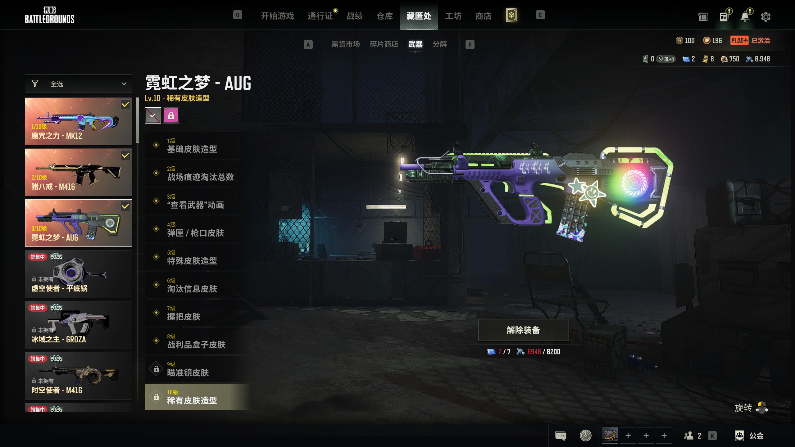 2级332211✅爱的主打歌✅3升级✅1车1杜卡迪✅8级霓虹AUG✅2级猪八戒M4✅魔咒MK12✅
