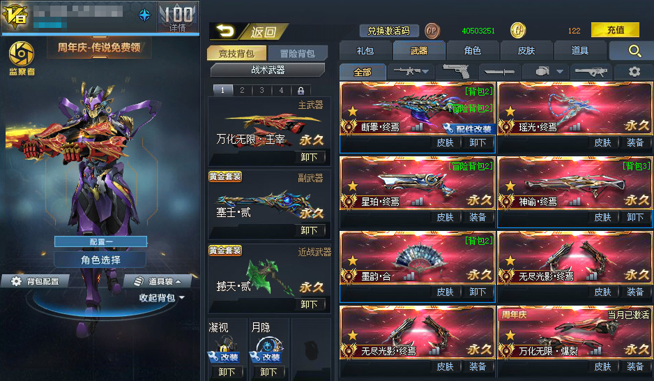 多配件武器⭐️崩雷 巫灵 归墟血契 猩红 焚风 寂灭 双伏虎 帝王战锤 尘羽 伯言 炎黄 鬼刃修罗 汉神之怒 环宇星涡 等满配武器