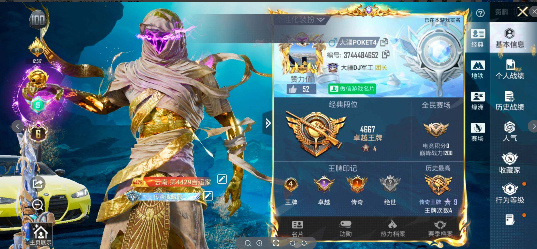- 历史最高段: 传奇王牌9星